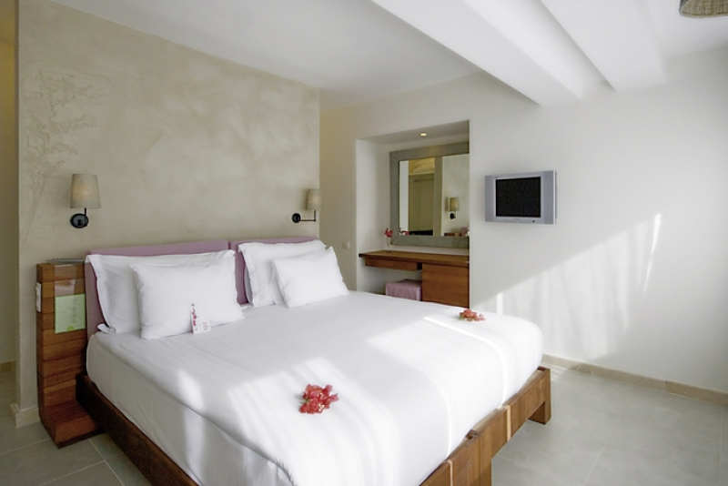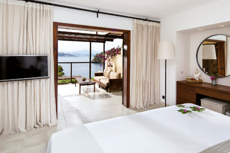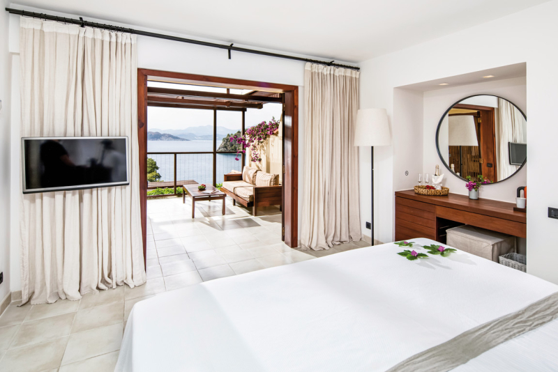 Die Zimmer sind modern eingerichtet und bieten unter anderem Satelliten-TV, eine Minibar, einen Safe, Klimaanlage und WLAN. Es gibt sowohl Doppelzimmer als auch Familienzimmer mit zwei Schlafzimmern. Alle Zimmer sind mit einer Terrasse ausgestattet und bieten Meer- oder seitlichen Meerblick.