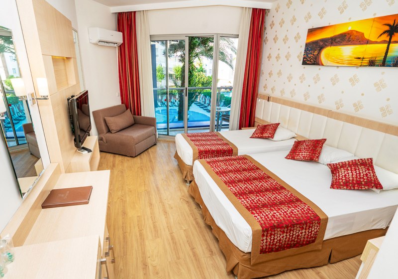 • Klimaanlage • Balkon (je nach Zimmerkategorie) • Kühlschrank • Haartrockner • Minikühlschrank • Minibar (gegen Gebühr) • Safe (gegen Gebühr) • Raucherzimmer • Fernseher • rollstuhlgerechte Zimmer (auf Anfrage) • WiFi • Schlafsofa