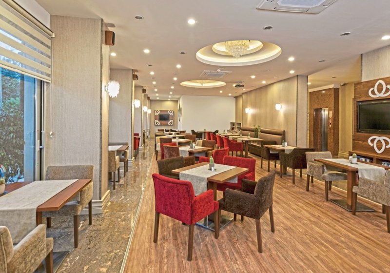 Ihr startet im Frühstückssaal oder auf der Terrasse des Buffetrestaurants in den Tag. Verpflegungsoptionen reichen von Übernachtung mit Frühstück bis Halbpension; Mittag- und Abendessen sind verfügbar. Ergänzend wählt Ihr zwischen Café, Bar, Lobbybar mit Terrasse und Poolbar – je nach Tageszeit und Stimmung.