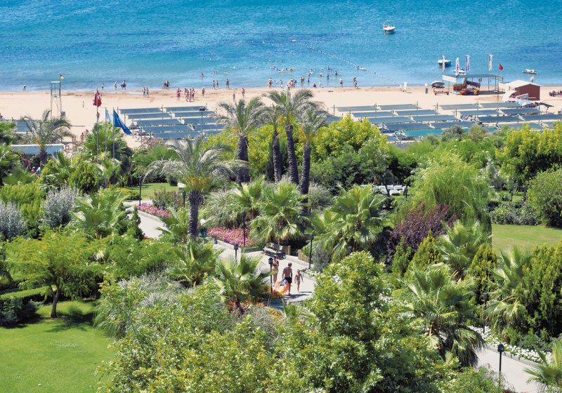 Ihr wohnt direkt am hoteleigenen Sandstrand von Side/Çolaklı. Das Ortszentrum von Çolaklı erreicht Ihr nach etwa 3 Kilometern, Side liegt rund 12 Kilometer entfernt. Antalya befindet sich in ungefähr 60 Kilometern Distanz, der Flughafen Antalya in rund 55 Kilometern – gut erreichbar für eine entspannte An- und Abreise.