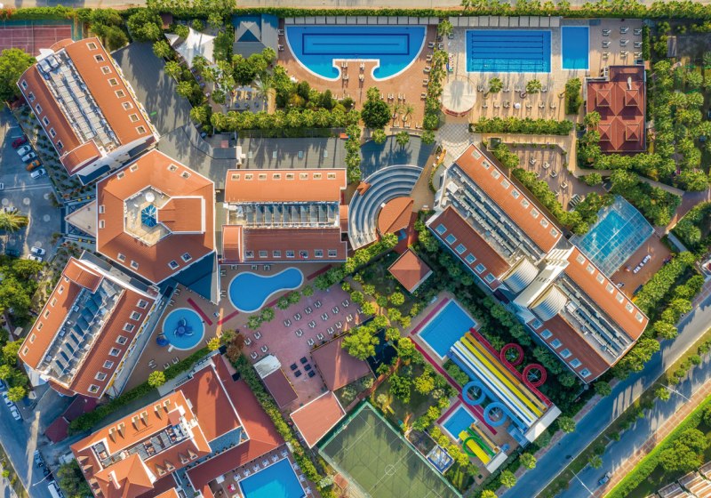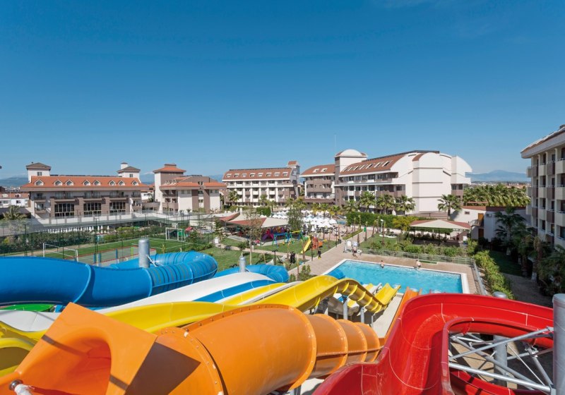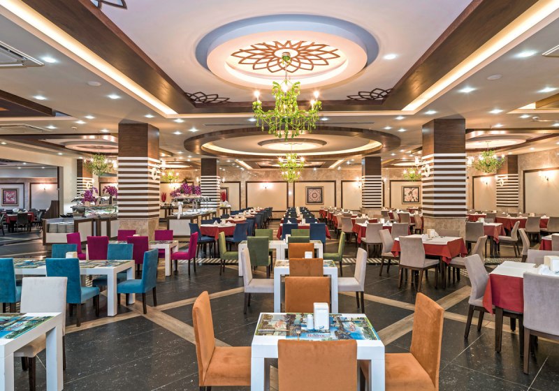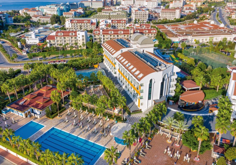Hane Family Resort verbindet kurze Wege zum breiten Sandstrand mit klar strukturierter Resortlogik aus Pools, Aquapark und abgestimmter Unterhaltung. Kulinarisch erwartet Euch Vielfalt vom Buffet mit Terrasse bis zu À‑la‑carte, flankiert von Bars zwischen Lobby und Strand.