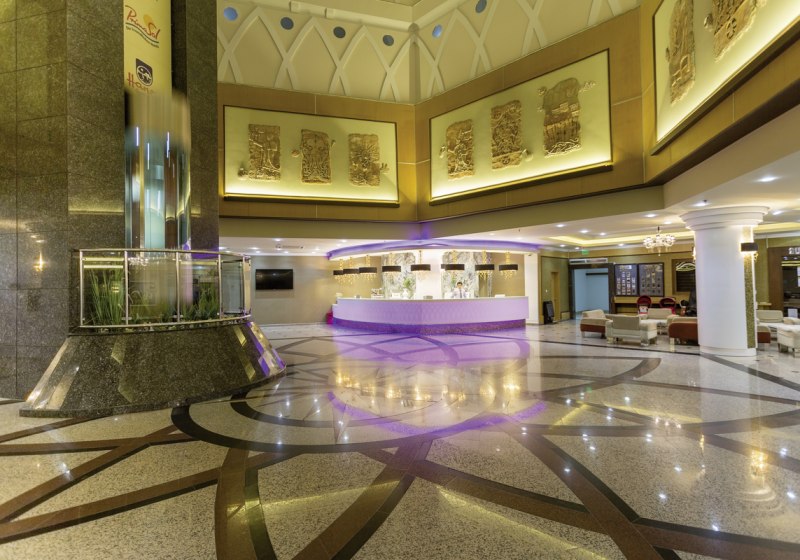 Im Hane Family Resort fühlt Ihr Euch von Beginn an in einem lebendigen Resort angekommen, das Strandgefühl und Familienzeit angenehm verbindet. Der weitläufige Garten mit mehreren Süßwasserpools und Relaxbereich rahmt Euren Tag, während der Aquapark mit Wasserrutschen für Tempo sorgt. In den öffentlichen Bereichen wirkt das Haus organisiert und freundlich, mit klaren Wegen zwischen Lobby, Bars, Patisserie und Terrasse. Kinder spielen auf dem Spielplatz, Ihr gleitet derweil zwischen Poolliegen und Strandshuttle hin und her.