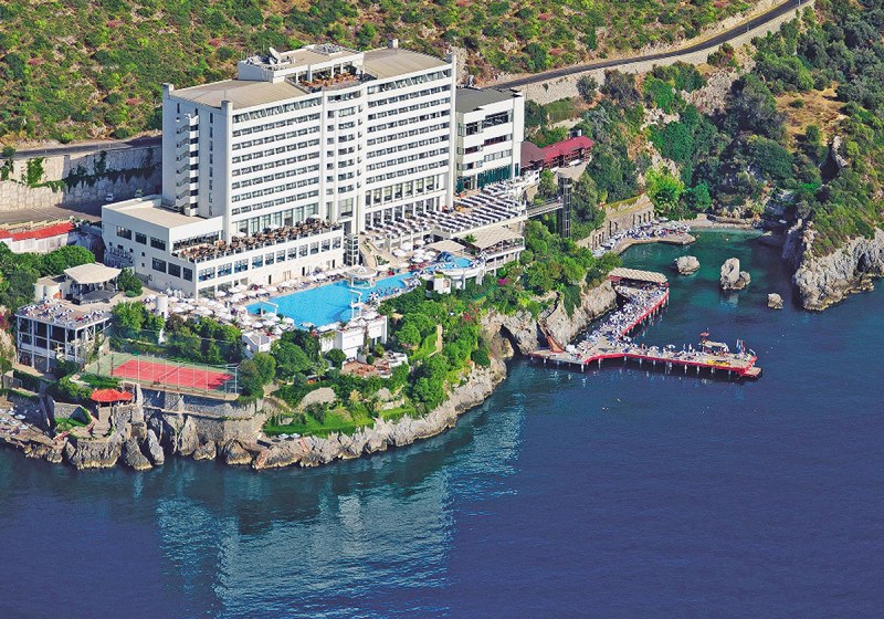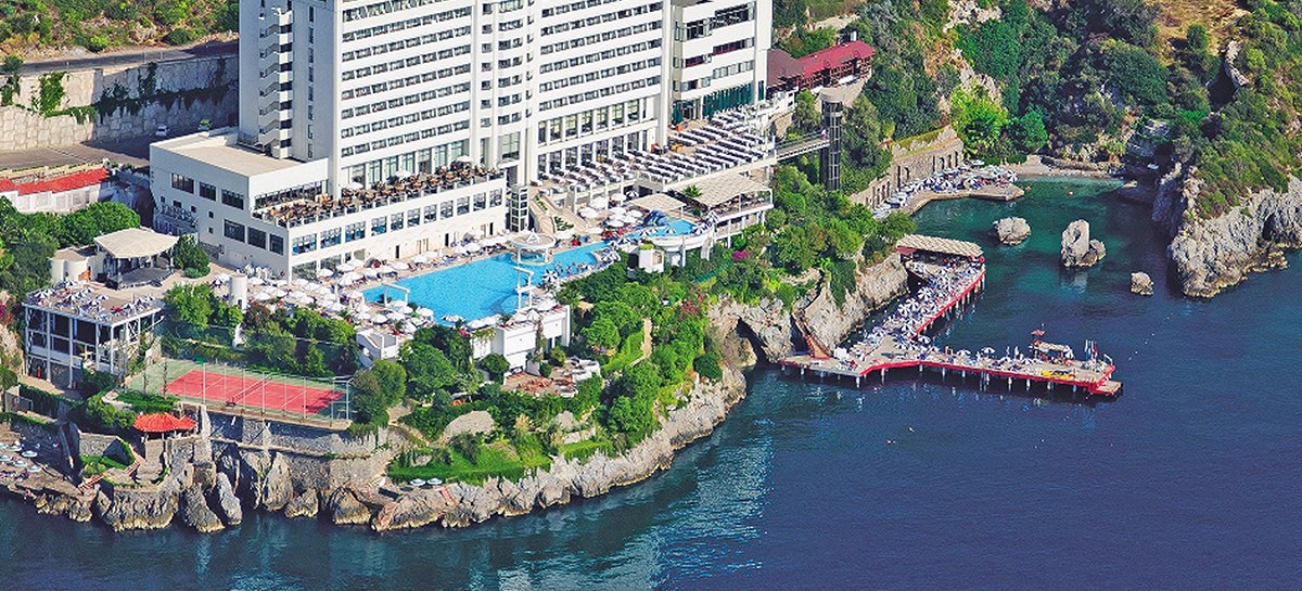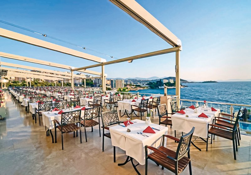 Mit 272 Zimmern, kostenlosem Wi‑Fi im Hotelgebäude und gut organisierter Infrastruktur sprecht Ihr ein Umfeld an, das Erholung und Unternehmungslust verbindet. Geschäfts- und Eventreisende greifen auf Konferenzräume und Business-Services zu, Kultur- und Strandreisende erreichen Kusadasi nach kurzer Strecke. Kulinarisch erwartet Euch eine Bandbreite von Buffet bis À‑la‑carte, begleitet von mehreren Bars – von Lobby bis Beach. Highlight: Direkte Meerlage an einer Bucht mit Badeplattform und inklusiven Liegen sowie Schirmen.