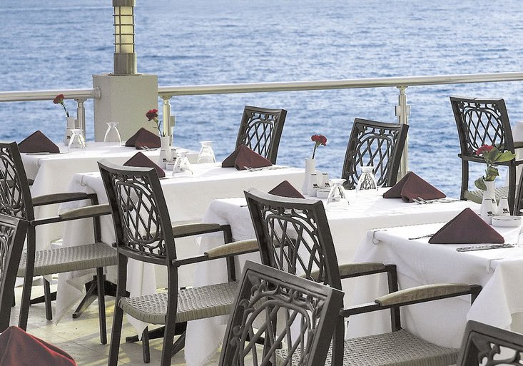 - Terrassen‑Buffet: Hauptrestaurant mit Terrasse für strukturierte Mahlzeiten im Freien.