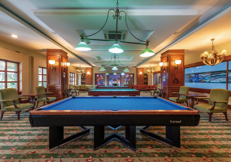 - Court & Club: Tennis-Hartplätze, Fitnessraum und Bowling bilden die Basis.