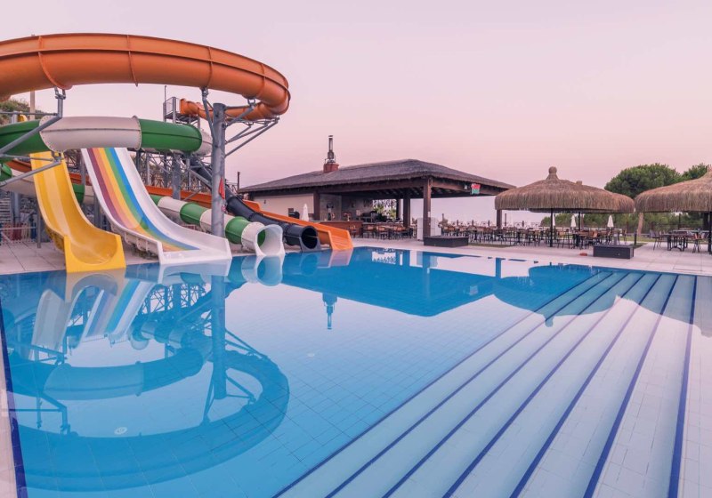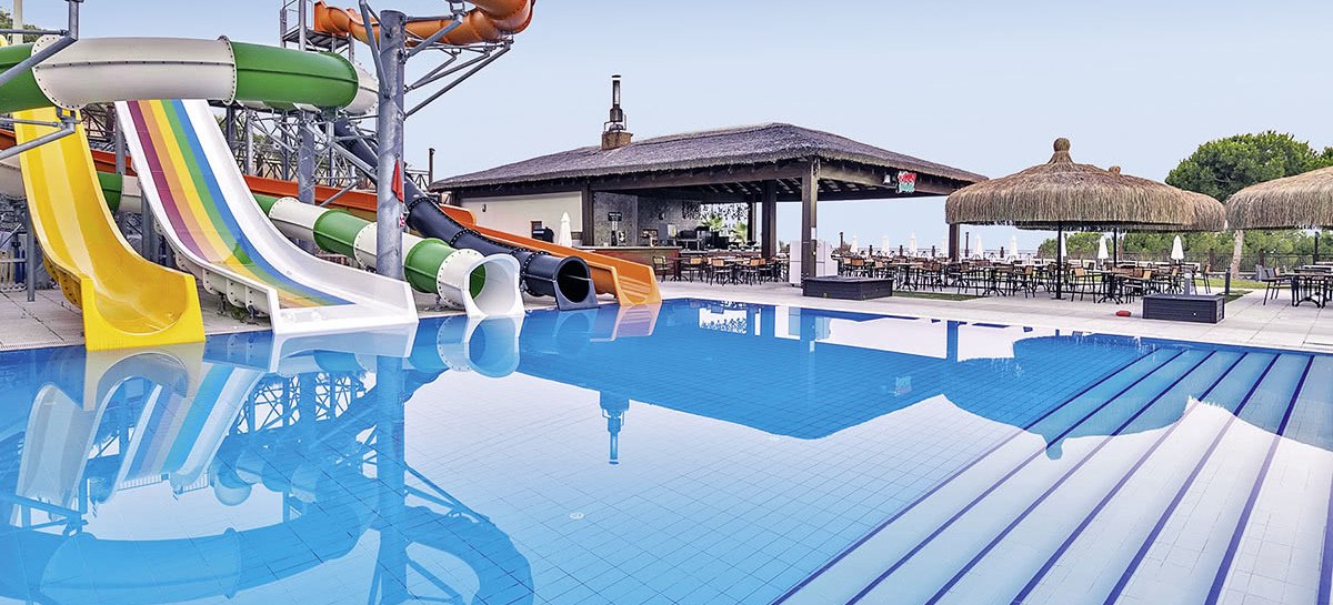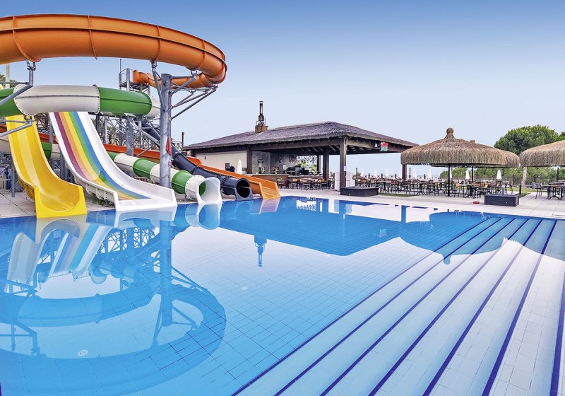 Im Mittelpunkt stehen Außenpool, Kinderpool, Wasserpark und Sonnenterrasse, ergänzt durch Hallenbad für kühlere Stunden. Am Strand nutzt Ihr Liegen und Schirme ohne Zusatzkosten, der Shuttle bindet alles zusammen. Medizinische Betreuung, Sicherheitsdienst und Parkplätze fügen praktische Sicherheit hinzu. Highlight: Wasserpark und Poollandschaft halten den Tag dynamisch und unkompliziert.