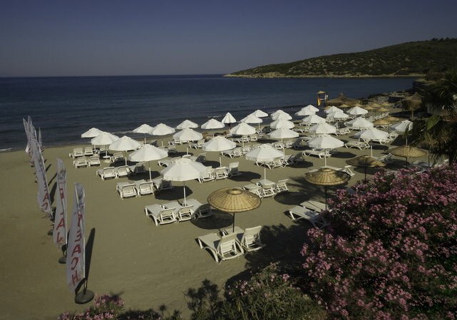 Ihr wohnt an der Gazibegendi Bulvarı in Kuşadası, Turkmen Mahallesi. Von hier erreicht Ihr den privaten Sand-/Kiesstrand bequem per Hotelshuttle – mit Liegen und Schirmen inklusive. Für Golfrunden liegt ein Platz rund 19 Kilometer entfernt, was Tagesausflüge planbar macht. Die Adresse ist gut angebunden und gleichzeitig praktisch, wenn Ihr zwischen Strandzeit, Pool und Ausflügen wechseln möchtet. Mit der Lage am Meer und der klar geregelten Strandlogistik bleibt Euer Tagesablauf übersichtlich. Highlight: Strandshuttle direkt vom Resort, strukturiert und ohne Zusatzkosten für Strandutensilien.