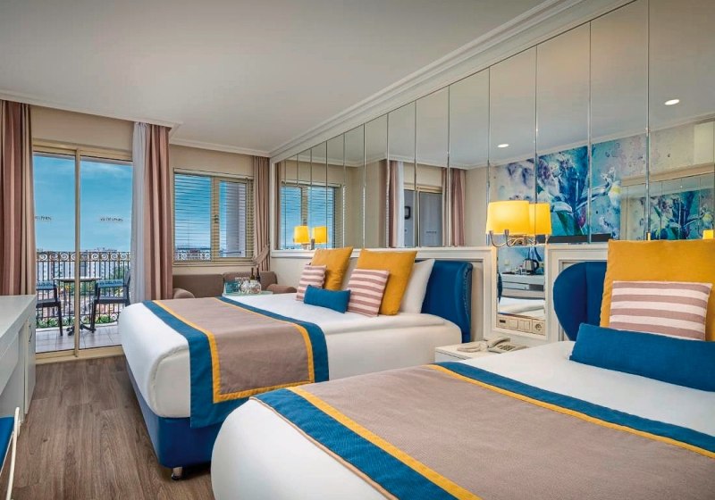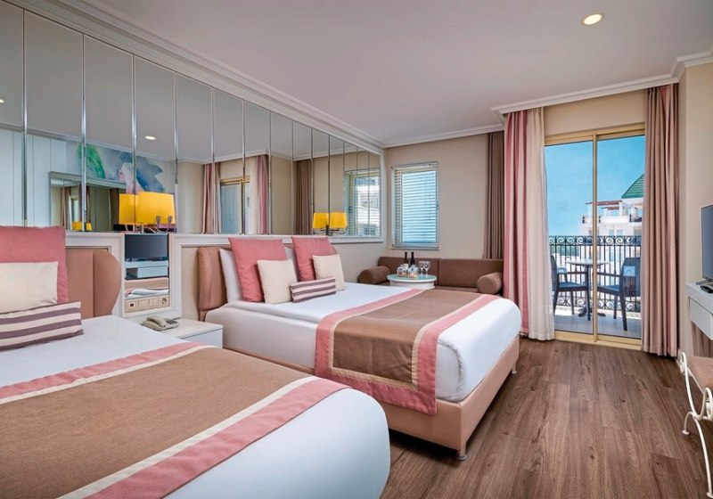 Wellness mit Hamam, Sauna und Hallenbad, dazu umfangreiche Sportangebote an Land und auf dem Wasser runden Euren Tag ab. Mit schneller Anbindung nach Antalya und kurzen Wegen im Resort plant Ihr Eure Ferientage flexibel – zwischen Meer, Garten, Bühne und Bar.