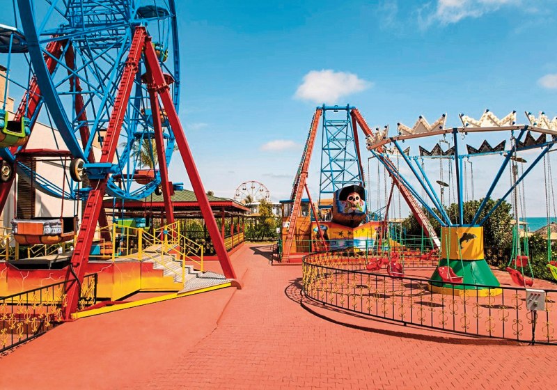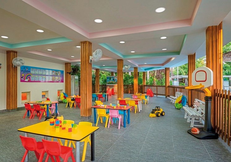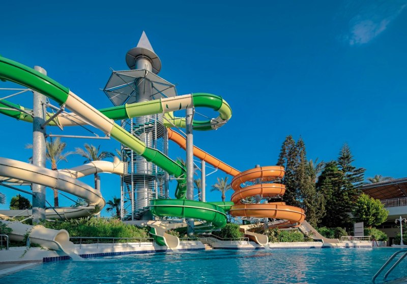 Die Infrastruktur ist breit gefächert: Empfangshalle mit Rezeption und Bar, WLAN im gesamten Hotel und in den Zimmern, Konferenzräume sowie ein Computerspiele-Club/Internetcafé. Geschäfte, Minimarkt, Souvenir-Shop und ein Friseur ergänzen das Angebot. Die Gartenanlage rahmt die große Süßwasser-Poollandschaft mit acht Wasserrutschen, Kinderpool, Poolbar und weitläufigen Liegebereichen.