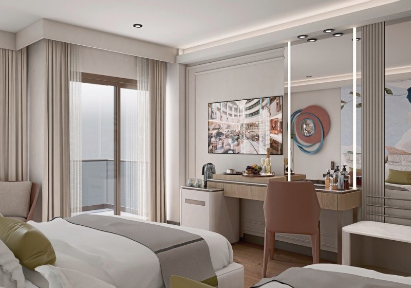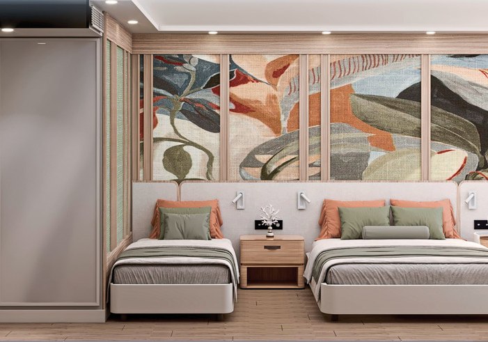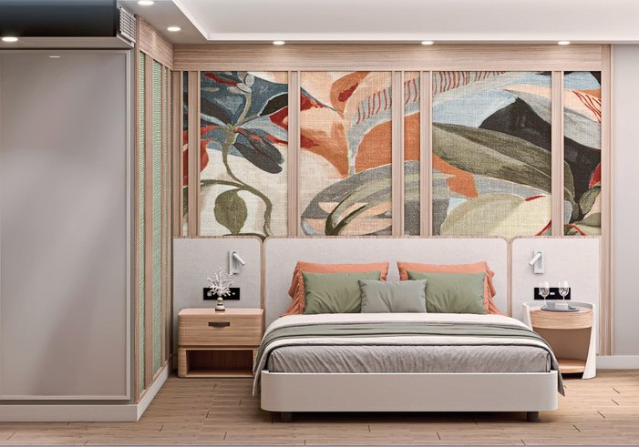 In den Zimmern erwarten Euch klare, praktische Details: Doppel- oder Einzelbett, dazu ein Sofa im Format 175x75 cm. Dusche/WC, Föhn und Kosmetikspiegel sind ebenso vorhanden wie LCD-Sat-TV mit Musikkanal, WLAN, zentral gesteuerte Klimaanlage, Minibar, Direktwahltelefon und Safe. Der Laminatboden sorgt für eine gepflegte Haptik, der Balkon erweitert den Wohnraum ins Freie.