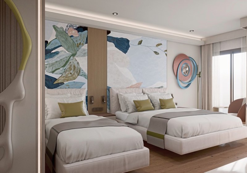 Für Familien stehen Varianten mit zwei Schlafräumen bereit – mit Verbindungstür oder als Maisonette – jeweils mit zwei Duschen. So gestaltet Ihr den Abend nach Eurem Rhythmus, während die Kinder bereits schlafen. Die klare Ausstattung unterstützt kurze Wege: ankommen, auspacken, wohlfühlen und direkt in Garten, Pool oder zum Strand wechseln. Optional wählt Ihr je nach Lage den Blick in die Gartenbereiche oder Richtung Umgebung.