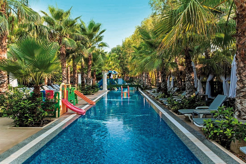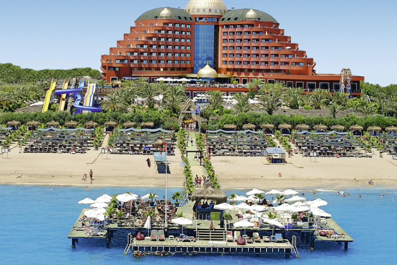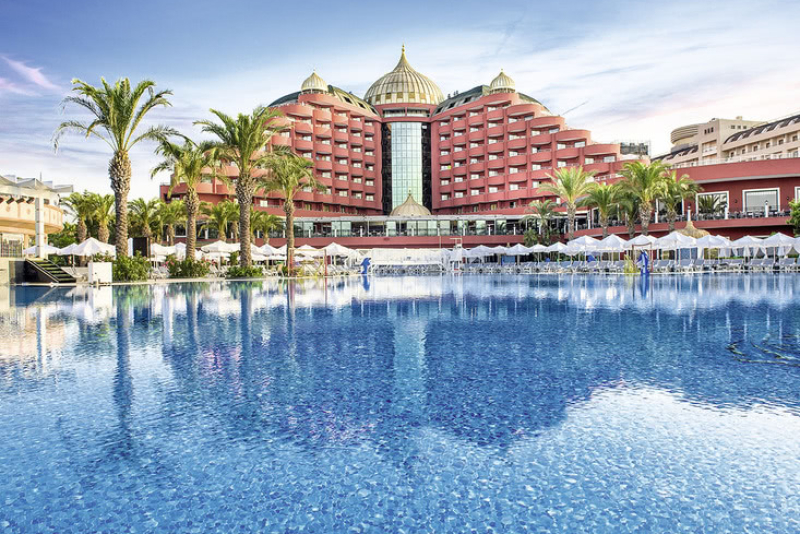 Das Hotel Delphin Palace ist eine elegant und freundlich eingerichtete Unterkunft in der Region Lara. Mit seinen insgesamt 557 Zimmern bietet das im Jahr 2005 erbaute Hotel ein luxuriöses Ambiente für Urlauber aller Art. Die insgesamt acht Restaurants und sieben Bars des Hotels sorgen für eine großartige kulinarische Vielfalt. Die Hotelanlage umfasst eine Fläche von rund 40.000 Quadratmeter inklusive einer liebevoll gestalteten Gartenanlage. Mit seinem Süßwasserpool inklusive Wasserrutschen, dem großen Wellnessbereich und einem abwechslungsreichen Sportprogramm bietet das Delphin Palace viele Möglichkeiten zur Erholung und Unterhaltung. Hinzu kommt eine sehr hohe Kundenzufriedenheit, die das Hotel zu einem erstklassigen Urlaubsziel macht.Bewertung