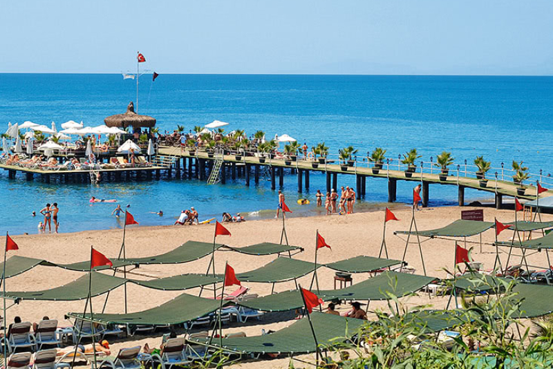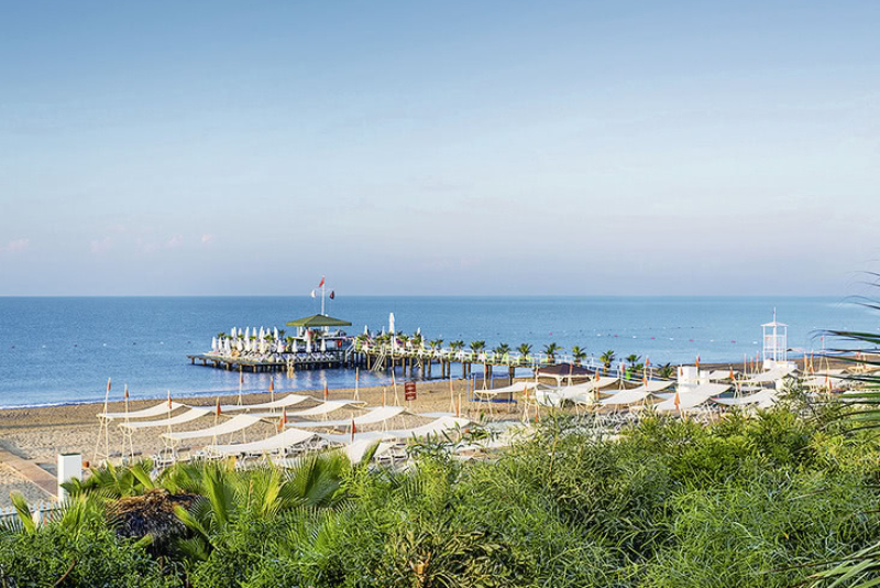 Das Delphin Palace liegt direkt am hoteleigenen Sand-/Kiesstrand 'Lara Beach'. Es ist nur etwa 10 km vom Flughafen Antalya entfernt. Das Stadt-/Ortszentrum ist etwa 15 km entfernt. In die Einkaufsstraße Kundu Bazaar sind es nur 1 km und zum Einkaufszentrum Akkapark Shopping Mall nur 600 m. Für die Abendunterhaltung sind Restaurants und Bars etwa 16 km entfernt.