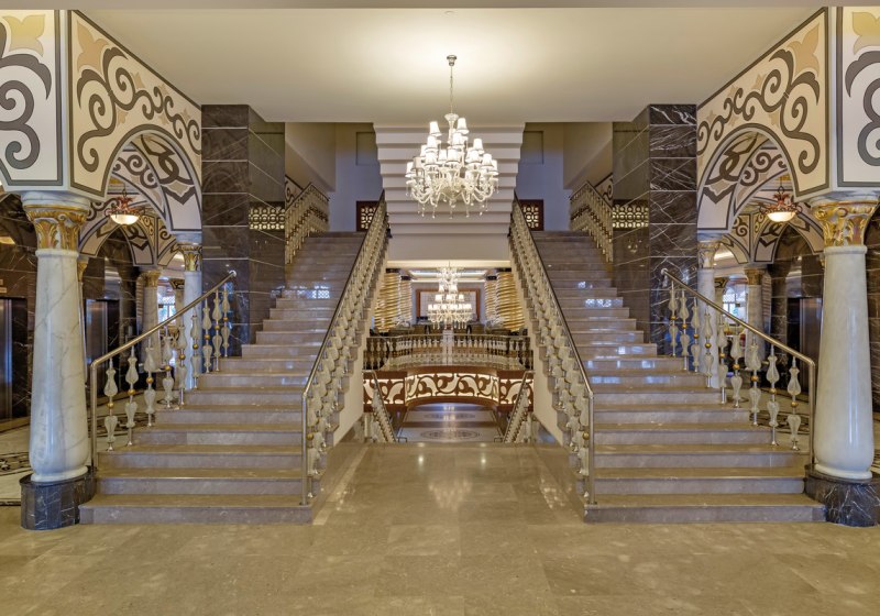 Inhaltlich setzt das Haus auf eine breite Infrastruktur: zehn Etagen, sechs Lifte, ein Theatersaal, Konferenzräume und ein Business‑Center geben Eurem Aufenthalt stabile Organisation. Kulinarik wird über Buffet mit Terrasse, À‑la‑carte‑Adressen, Patisserie sowie mehrere Bars getragen; All‑Inclusive Plus mit Live‑Kochen und inkludierten Getränken sorgt für Verlässlichkeit. Für Kinder stehen Miniclub, Mini‑Disco und separate Becken bereit, drinnen wie draußen. Wellness mit Hallenbad, Hamam, Sauna und Spa‑Behandlungen rundet sportliche Angebote wie Tennis, Fitness und Wasseraerobic ab. Highlight: Aquapark und Vergnügungspark bündeln familiengerechte Action an einem Ort.