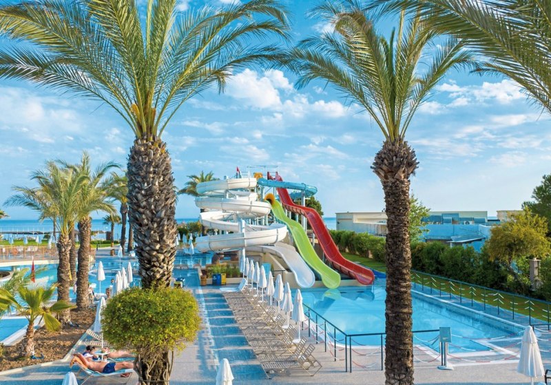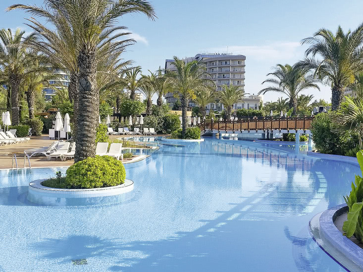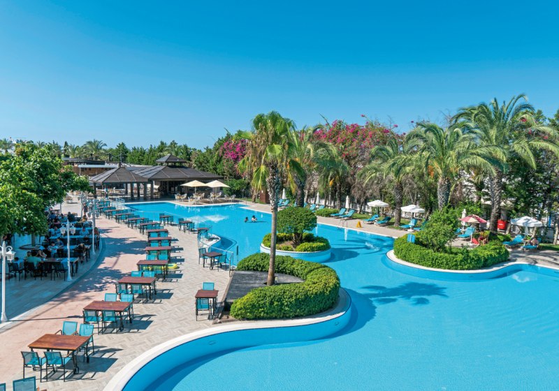 Im Liberty Lara wohnt Ihr direkt am Kies- und Sandstrand von Lara und erlebt ein Resort, das mit klarer Struktur und viel Raum für Badeleben überzeugt. Weitläufige Pools mit Wasserrutschen, grüne Gartenflächen und kurze Wege zum Meer prägen den Tagesrhythmus. Familien freuen sich über Miniclub und Kinderbecken, Paare über ruhige Ecken und abendliche Livemusik.