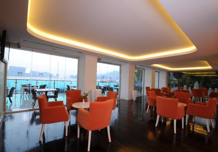 Im Hotel Marbella wohnt Ihr direkt an der Uferpromenade der Marmaris-Bucht, mit dem Sand-Kiesstrand nur durch den Weg getrennt. Das Haus mit vier Etagen und 84 Zimmern wirkt übersichtlich und angenehm fokussiert: kurze Wege, klare Strukturen, Meerblick-Terrasse im Restaurant. Highlight: Promenadenlage mit Strandzugang über wenige Schritte.