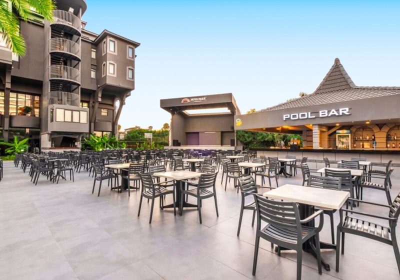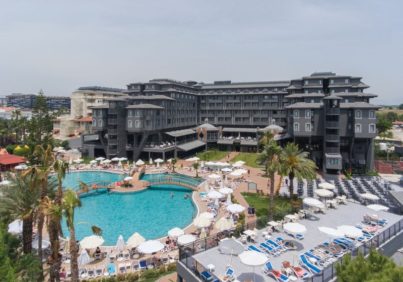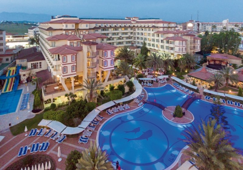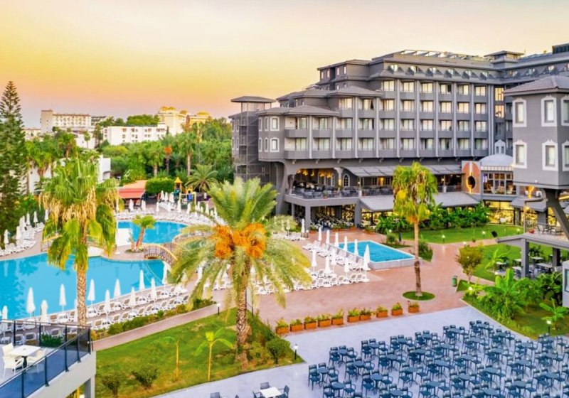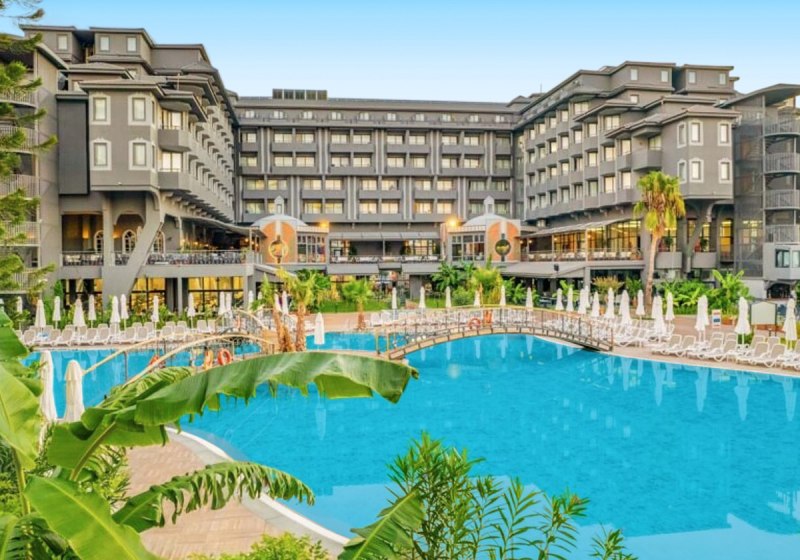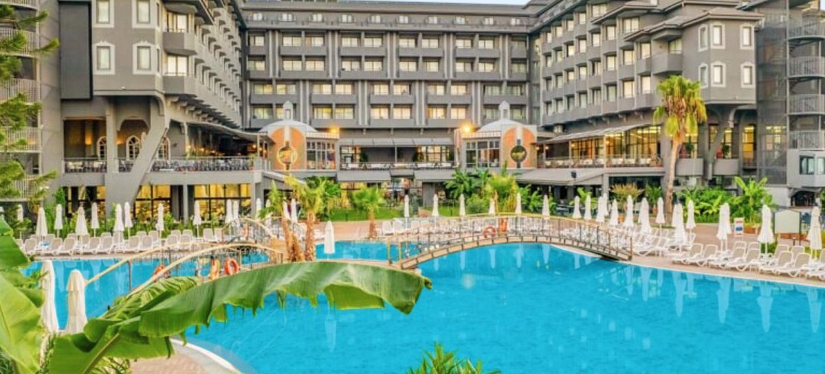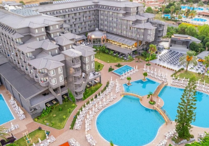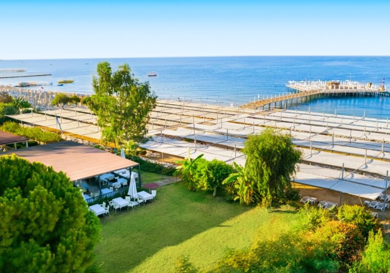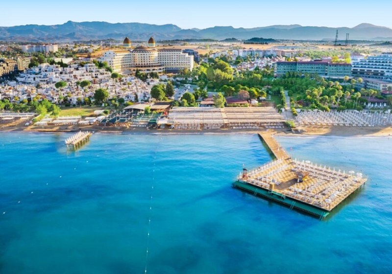 Im Hotel Nova Park wohnt Ihr an der Kumköy-Straße in Side, mit direktem Zugang zum Strand hinter dem Hotel. Die Anlage wirkt großzügig organisiert: 326 Zimmer, weitläufige Sonnenterrassen und mehrere Pools, darunter ein Süßwasser-Außenpool, Kinderbecken und ein Bereich mit Wasserrutschen. Highlight: Hotelstrand mit Schirmen und Liegen, bequem erreichbar zu Fuß.