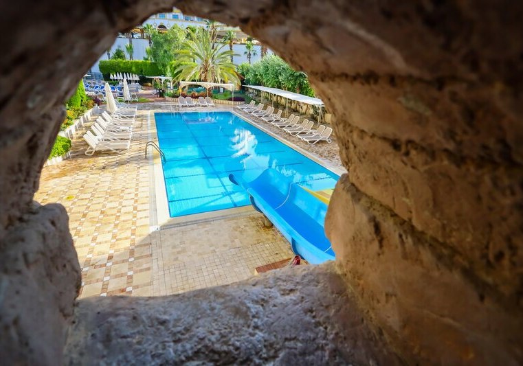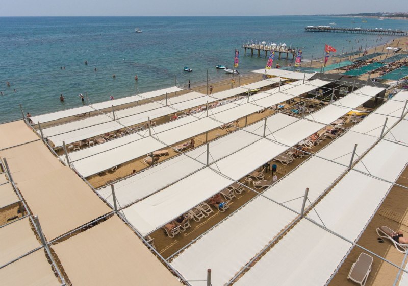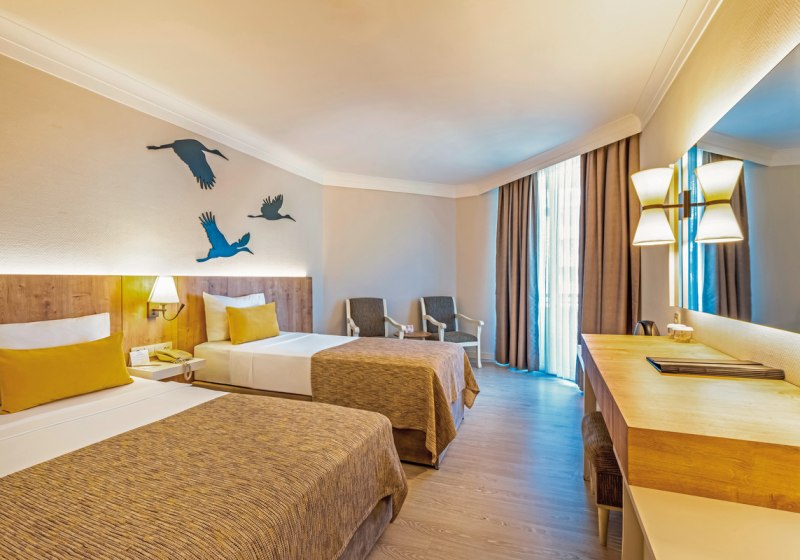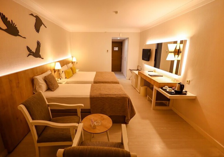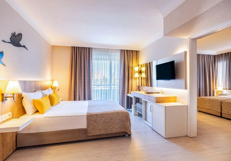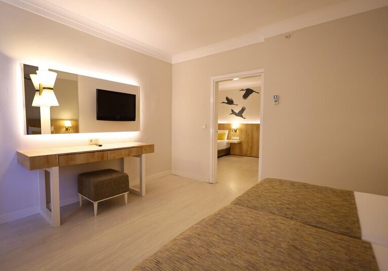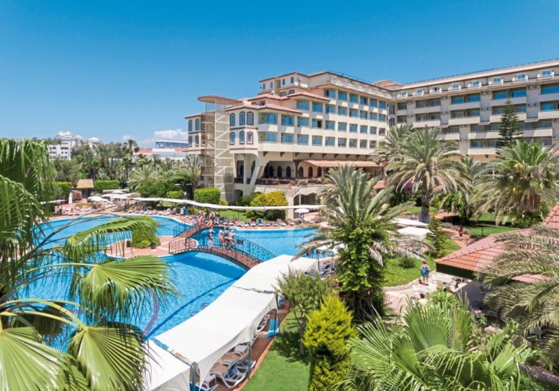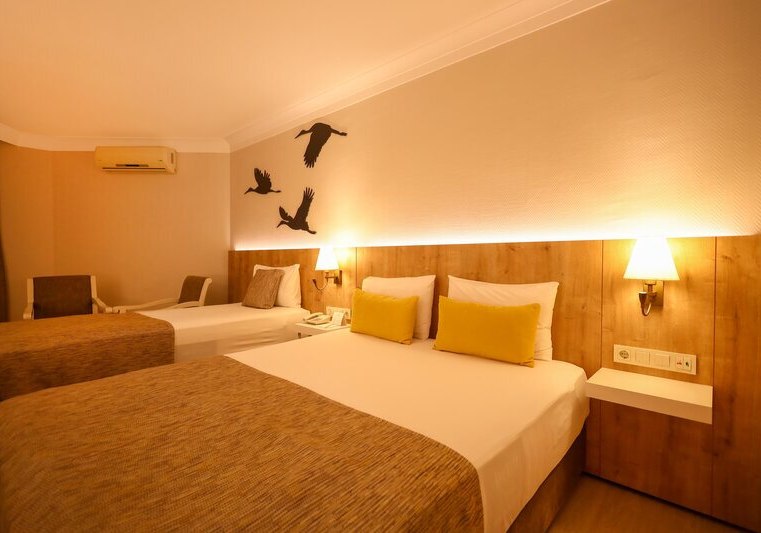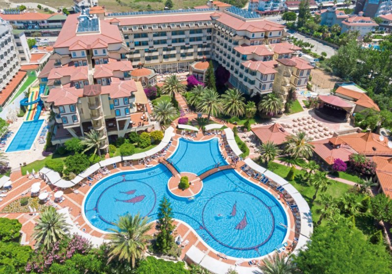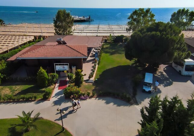 Im Hotel Nova Park wohnt Ihr an der Kumköy-Straße in Side, mit direktem Zugang zum Strand hinter dem Hotel. Die Anlage wirkt großzügig organisiert: 326 Zimmer, weitläufige Sonnenterrassen und mehrere Pools, darunter ein Süßwasser-Außenpool, Kinderbecken und ein Bereich mit Wasserrutschen. Highlight: Hotelstrand mit Schirmen und Liegen, bequem erreichbar zu Fuß.