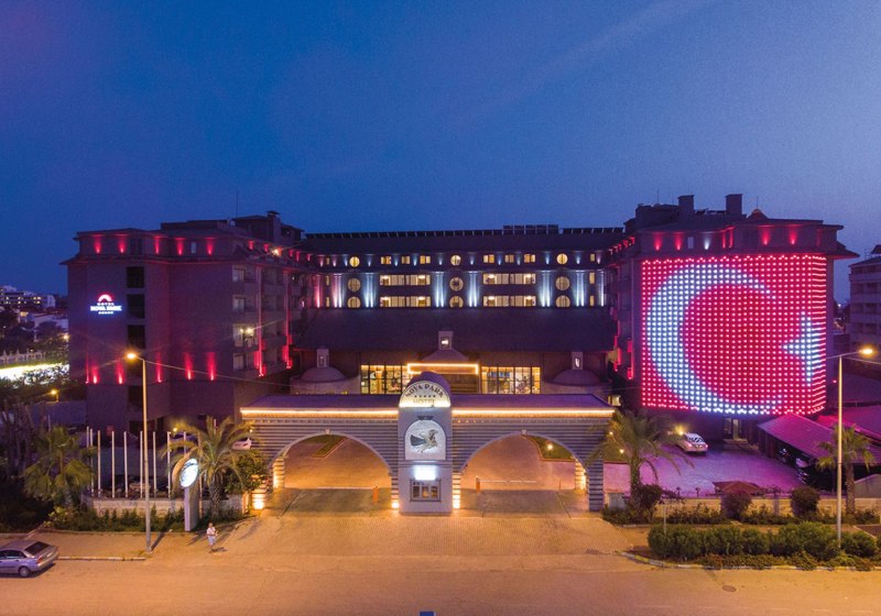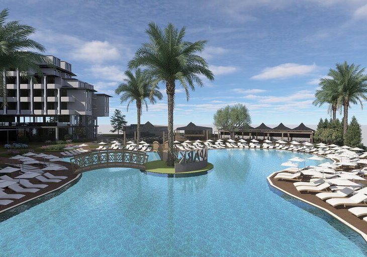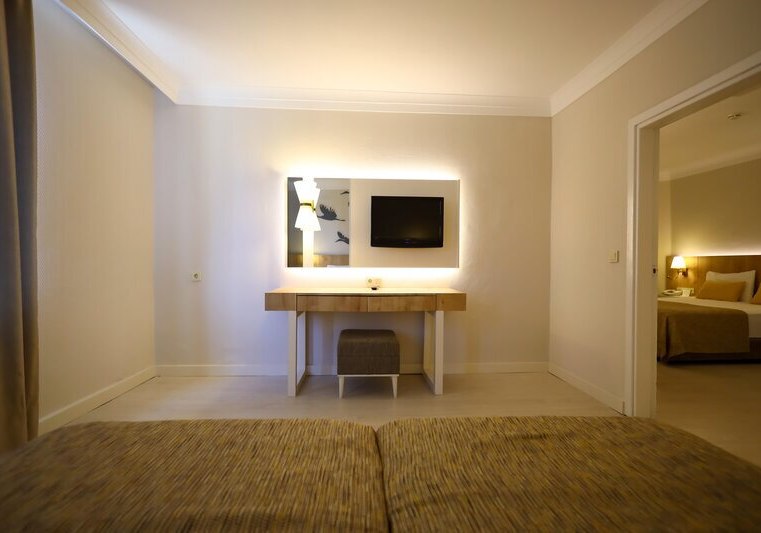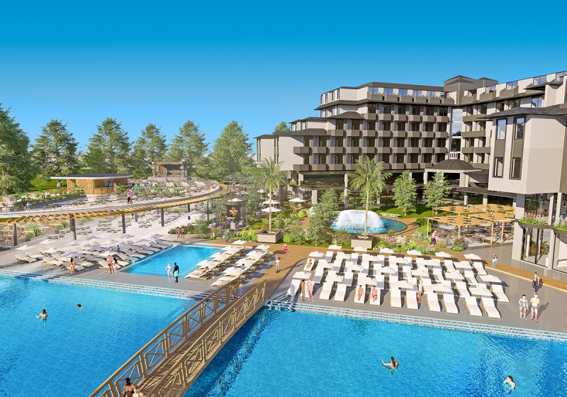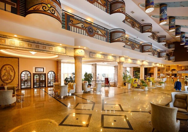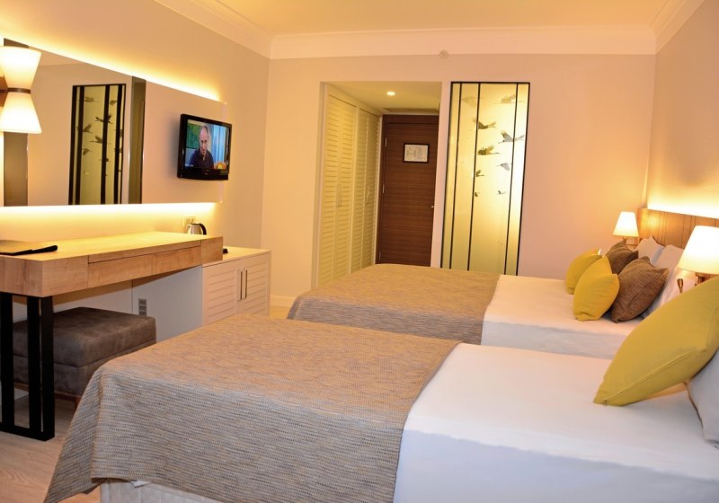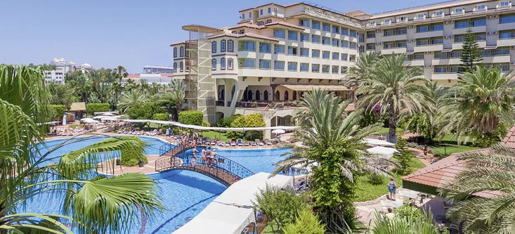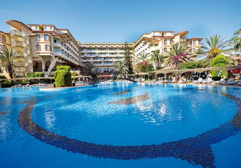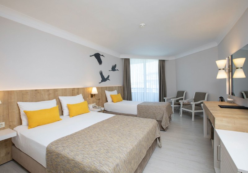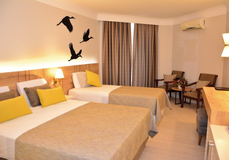 Im Hotel Nova Park wohnt Ihr an der Kumköy-Straße in Side, mit direktem Zugang zum Strand hinter dem Hotel. Die Anlage wirkt großzügig organisiert: 326 Zimmer, weitläufige Sonnenterrassen und mehrere Pools, darunter ein Süßwasser-Außenpool, Kinderbecken und ein Bereich mit Wasserrutschen. Highlight: Hotelstrand mit Schirmen und Liegen, bequem erreichbar zu Fuß.