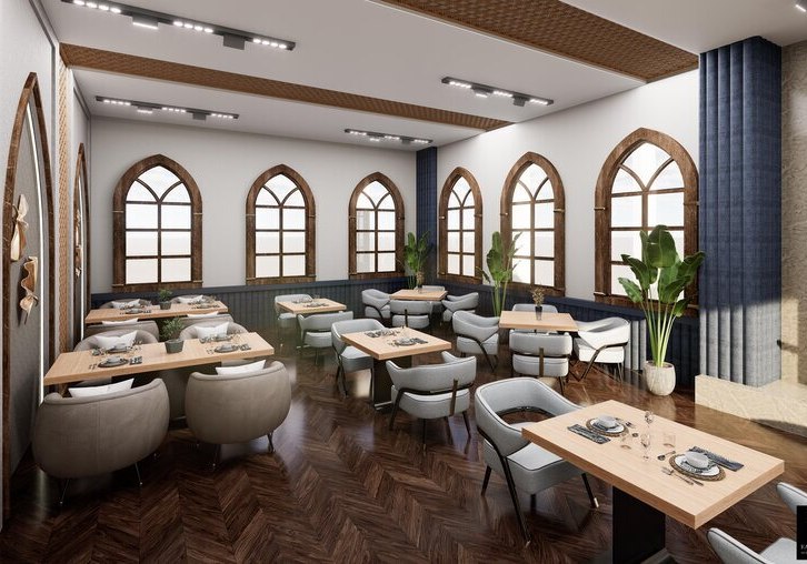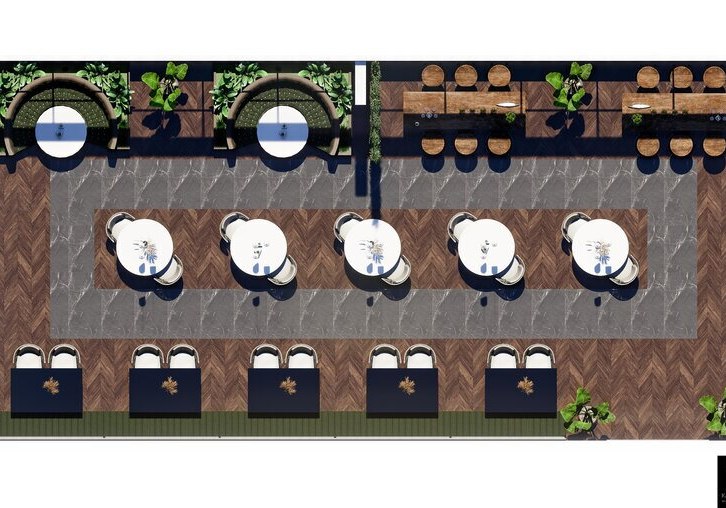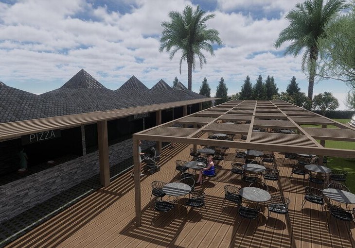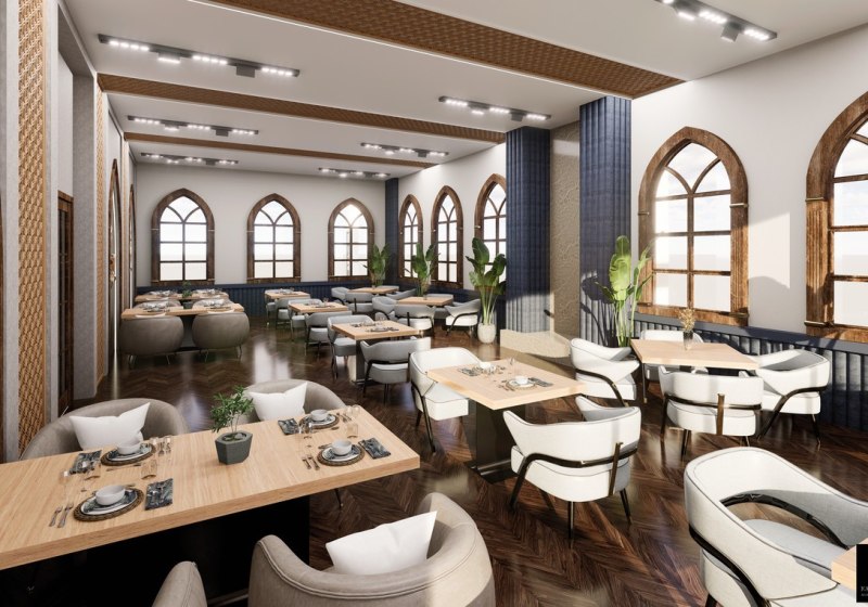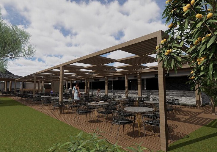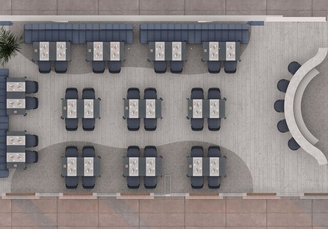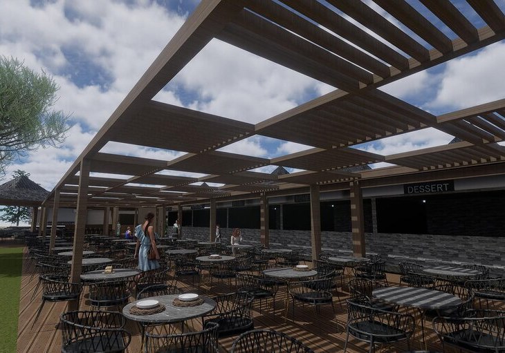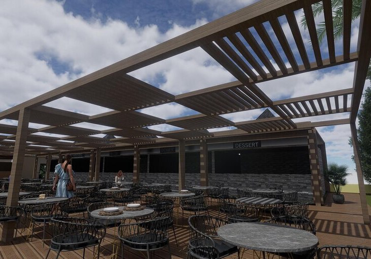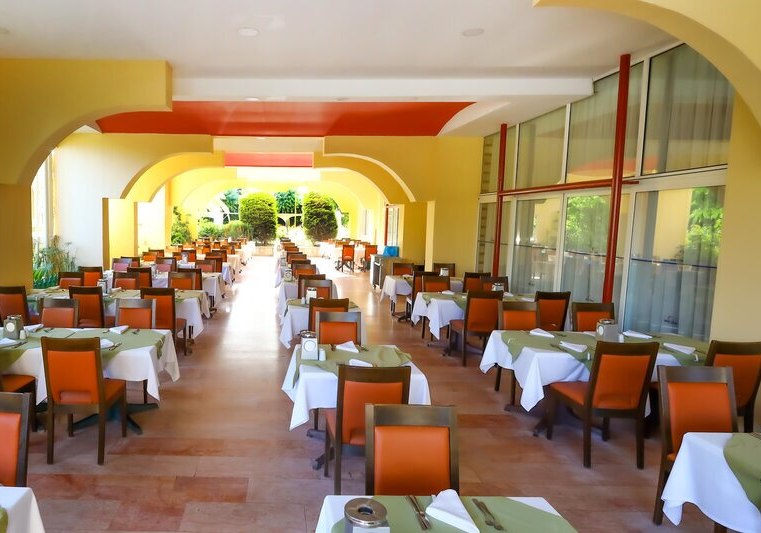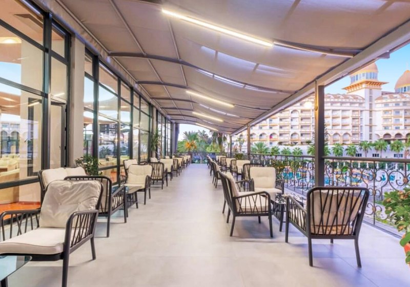 - Terrassenplätze: Hauptrestaurant mit Terrasse für Mahlzeiten im Freien.