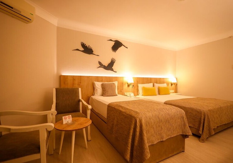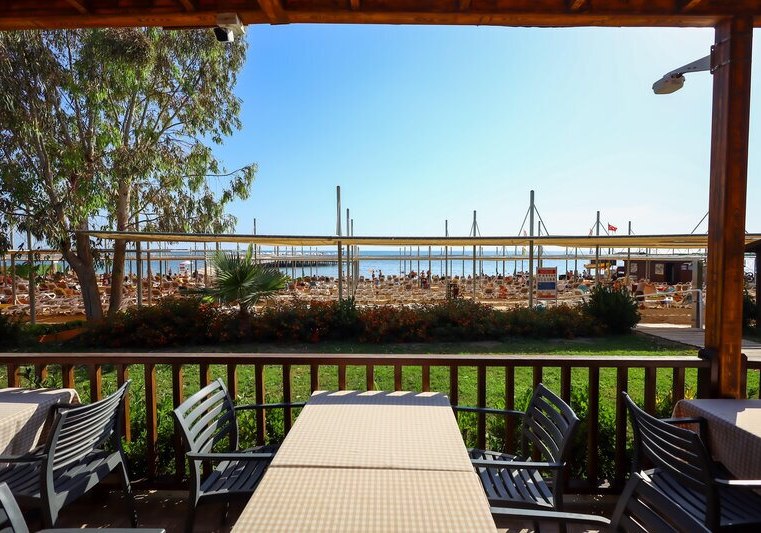 Ihr wohnt an der Kumköy-Straße in Side, mit Zugang zum Strand hinter dem Hotel. Der feinsandige Abschnitt liegt etwa 200 Meter entfernt; zu Fuß seid Ihr in rund fünf Minuten dort. Nach Side sind es circa vier Kilometer, ideal für kurze Ausflüge. Highlight: Strandbar und bereitstehende Liegen mit Schirmen.