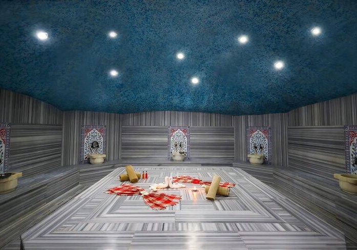 - Hammam & Sauna: Wellnessbereich mit Hallenbad, Türkischem Bad, Sauna und Massagen.