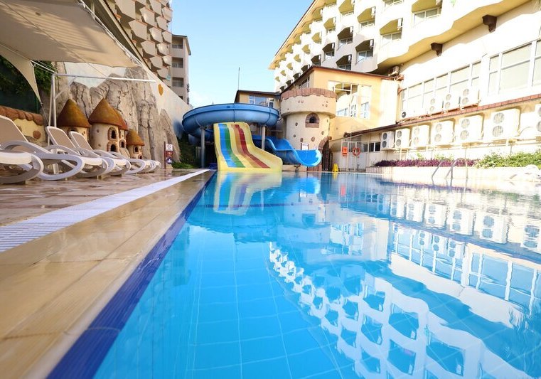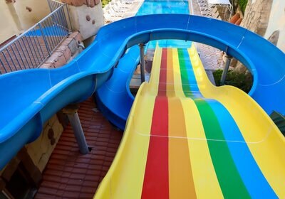 - Rutschenpool: Pool mit Wasserrutschen und separatem Kinderbecken.