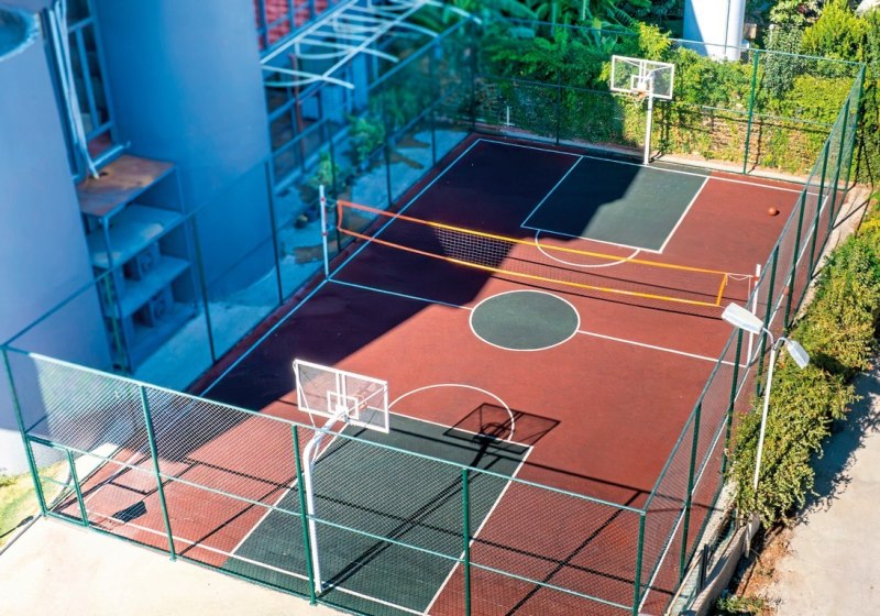 - Fitness & Court: Fitnessraum, Beachvolleyball und Boccia für aktive Stunden.
