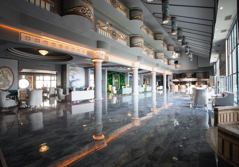 Die öffentlichen Bereiche sind klar angeordnet: Empfangshalle mit Rezeption, Lobbybar, Terrassen und Sonnendecks. WLAN steht in Lobby, Zimmern, am Pool und an der Strandbar zur Verfügung. Boutiquen, ein Damen- und Herrenfriseur sowie Geschäfte erweitern das Angebot. Highlight: Zwei Konferenzräume, einer für bis zu 200 Personen.