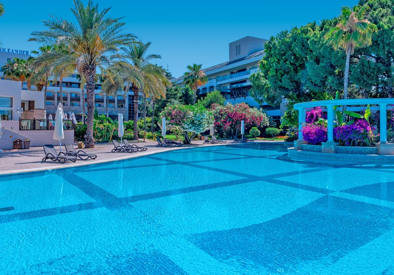 Im Hotel Oleander wohnt Ihr in drei f5nfgeschossigen Geb23uden direkt am breiten, flach abfallenden Sandstrand von Kumk f6y. Die weitl e4ufige Gartenanlage mit Sonnenterrassen, zwei S fc dfwasserpools und Wasserrutsche f fchlt sich fcbersichtlich und angenehm an. Familien finden mit Miniclub und dem 500 m b2 gro dfen abWonderland bb viele Spielfl e4chen, w e4hrend Ruhesuchende zwischen Pool und Strand entspannt wechseln.