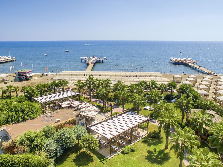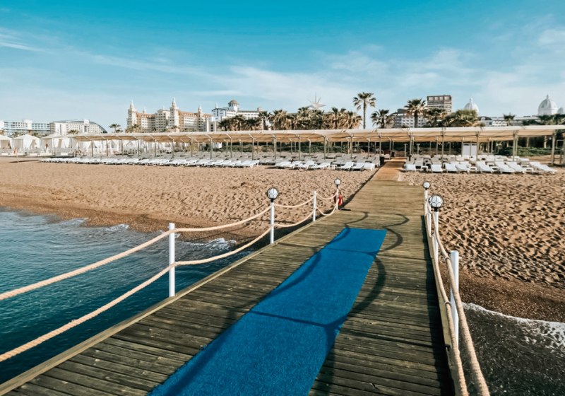 Direkt am Strand von Lara entfaltet sich Euer Tag zwischen Meer und Resort, ohne Umwege. Bis ins Zentrum von Antalya sind es rund 17 Kilometer – ideal für einen Stadtbummel oder den Besuch historischer und moderner Viertel. Vor Ort profitiert Ihr von Strandbar, Liegen und Schirmen; der Küstenstreifen strukturiert den Tagesablauf angenehm.