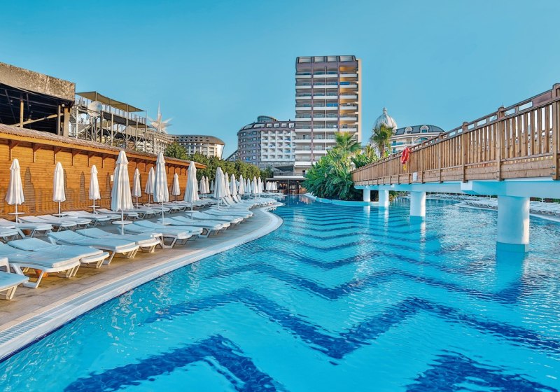 Saturn Palace Resort verbindet direkte Strandlage in Lara mit einer klar gegliederten Resortstruktur. Aquapark, umfangreicher Sportmix, abendliche Shows und sinnvolle Rückzugsorte schaffen einen ausgewogenen Tageslauf. Kulinarisch tragt Ihr all‑inclusive leicht durch den Tag – mit Buffet, À‑la‑carte‑Akzenten und kurzen Wegen zu Bars.