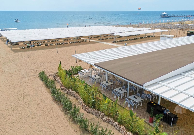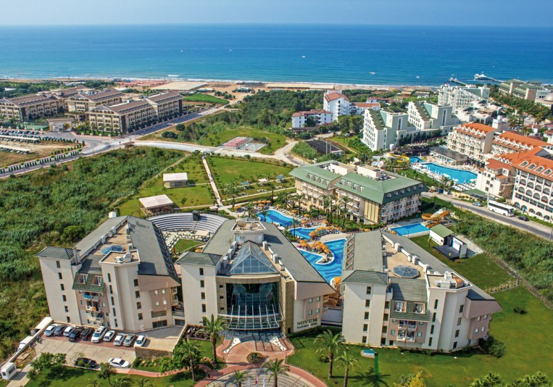 Ihr wohnt in Colakli, nur etwa 200 Meter vom hoteleigenen Sandstrand und gleicher Distanz zu Einkaufs- und Unterhaltungsmöglichkeiten. Die Lage ist alltagsnah, ohne vom Strandgefühl abzurücken. Wer Kultur und Hafenflair sucht, erreicht Side nach rund 11 Kilometern. Zum Flughafen Antalya sind es ungefähr 55 Kilometer, die An- und Abreise bleibt planbar.