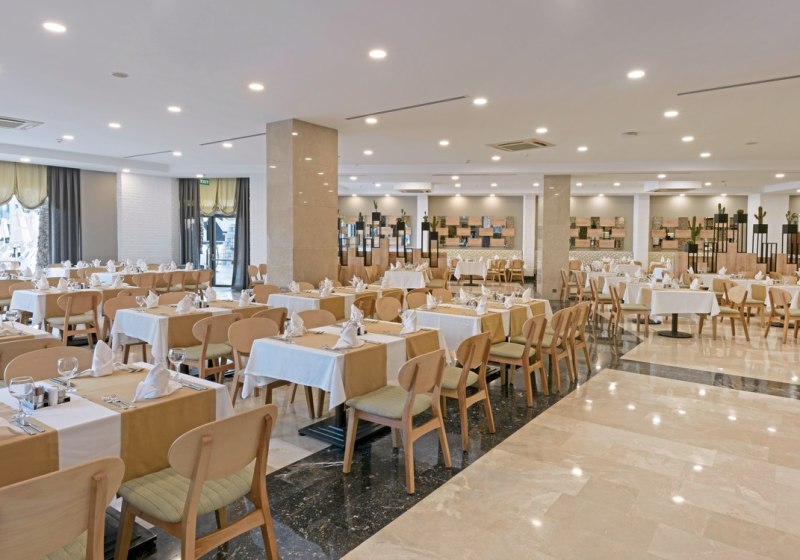 Das kulinarische Zentrum ist das Buffetrestaurant mit Terrasse. Ihr wählt aus All-inclusive-Angeboten mit Frühstück, Mittag- und Abendessen, ergänzt um Live-Kochen zu ausgewählten Zeiten. Vegetarische Kost und glutenfreie Mahlzeiten sind vorgesehen, sodass Ihr Eure Vorlieben klar abbildet. Für Abwechslung sorgt zusätzlich ein À-la-carte-Restaurant.
