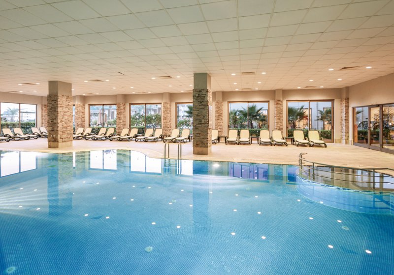 • Liegestühle • Hallenbad • Außenpool • Sonnenschirme • Pool • Poolbar • Sonnenterrasse • Badetücher • Wasserrutsche • Wasserpark
