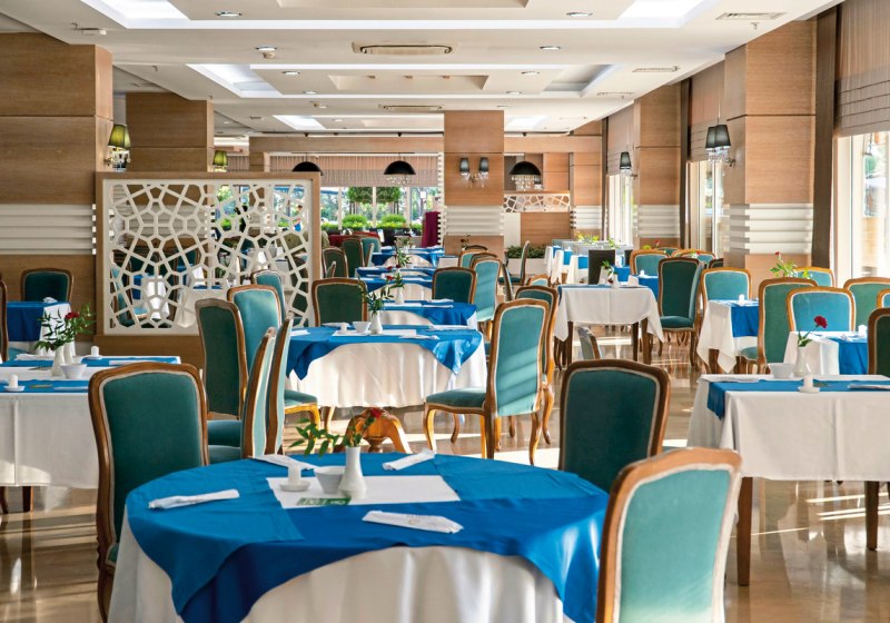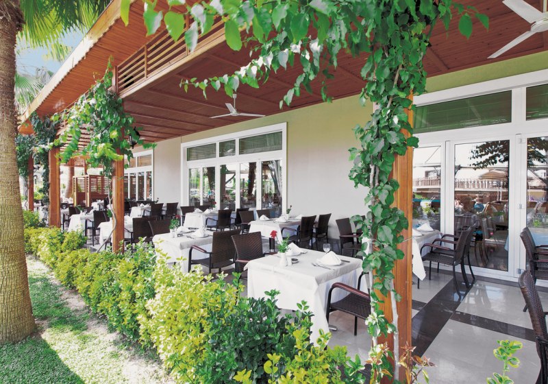 Das Haus richtet sich ab 16 Jahren an Erwachsene, die am feinen, flach abfallenden Sandstrand vor der Promenade entspannen möchten. Am hoteleigenen Strandabschnitt sowie am Pool liegen für Euch Liegen, Sonnenschirme und Badetücher bereit (saisonal verfügbar). Kulinarisch trefft Ihr auf Buffet mit Terrasse, mehrere À-la-carte-Optionen, Patisserie sowie Bars von der Lobby bis zum Strand. Abends runden Shows und die hauseigene Diskothek den Tag ab.