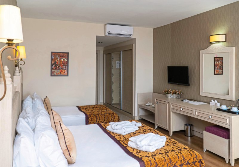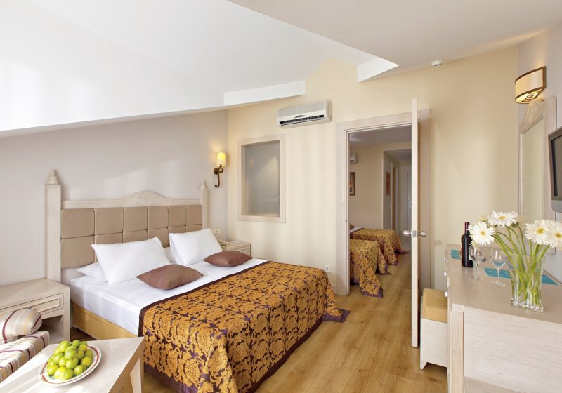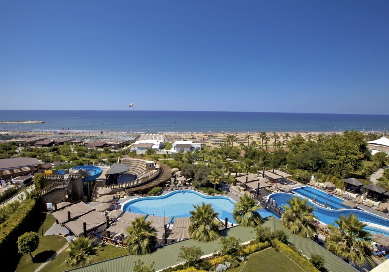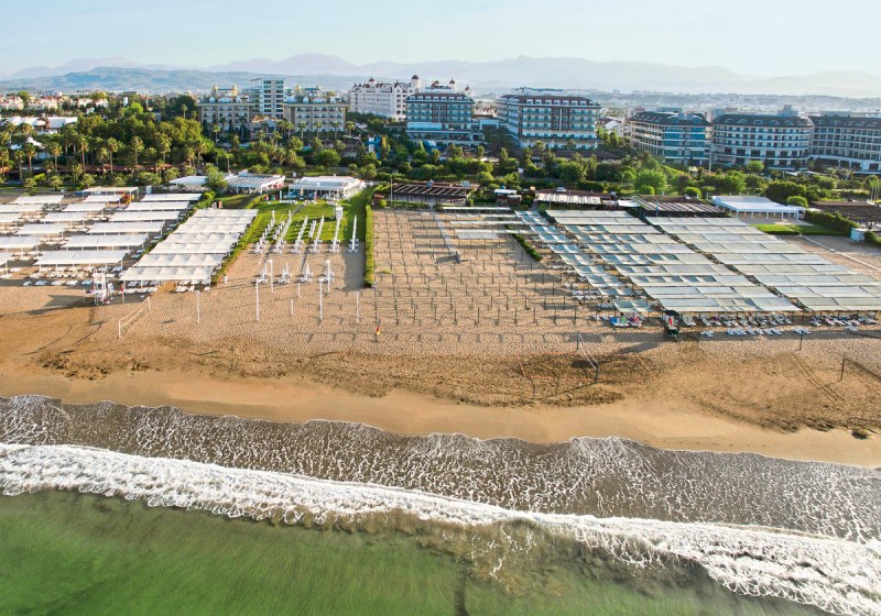 Ihr wohnt in Side an der Strandpromenade, nur durch diese vom flach abfallenden, feinen Sandstrand getrennt. Das hauseigene Strandstück liegt gegenüber der Anlage, ideal für kurze Wege zwischen Meer und Pool. Bis ins Ortszentrum von Side sind es etwa 10 km, öffentliche Verkehrsmittel und eine Bushaltestelle sind ausgewiesen.