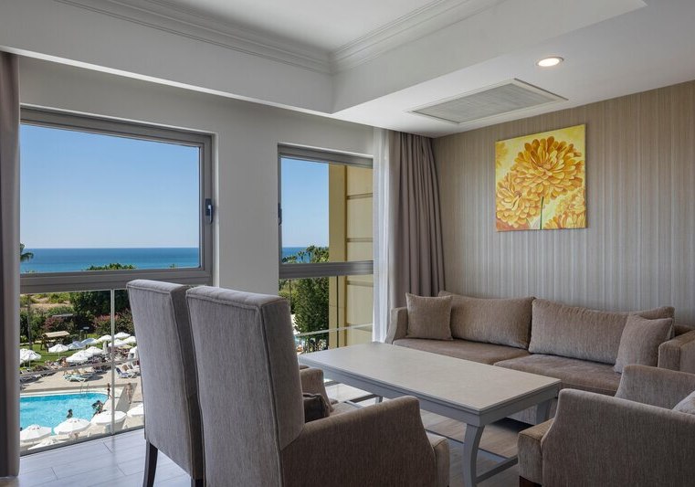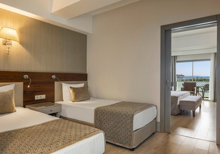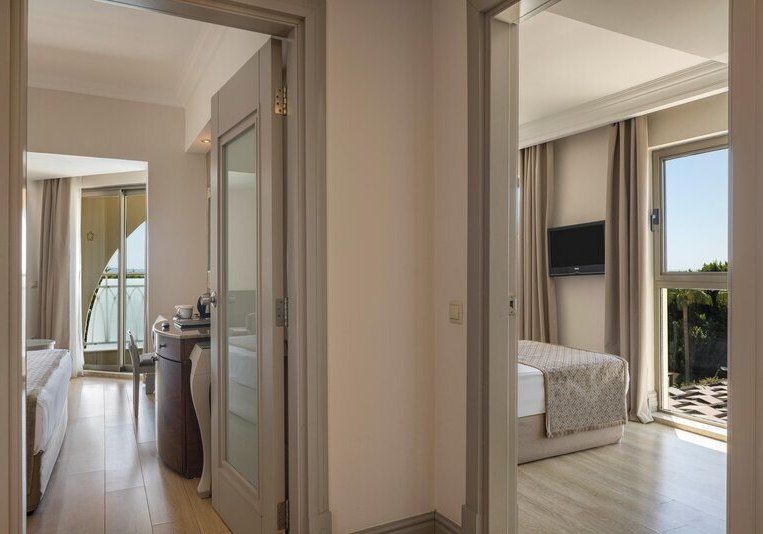 • Klimaanlage • Haartrockner • Minibar • Safe • Meerblick (je nach Zimmerkategorie) • Schlafsofa • Kaffee-/Teezubereiter • Terrasse • Fernseher (Sat-TV) • WiFi • Gartenblick • Wasserkocher • Wohneinheit im Erdgeschoss • Wohneinheit in Aufzugnähe • Babybett (Vorreservierung erforderlich, auf Anfrage, kostenfrei) • Bettwäsche • Schlafzimmer (Anzahl) • Kleiderständer • Kleider-/Wandschrank • Housekeeping (täglich) • Balkon (je nach Zimmerkategorie)