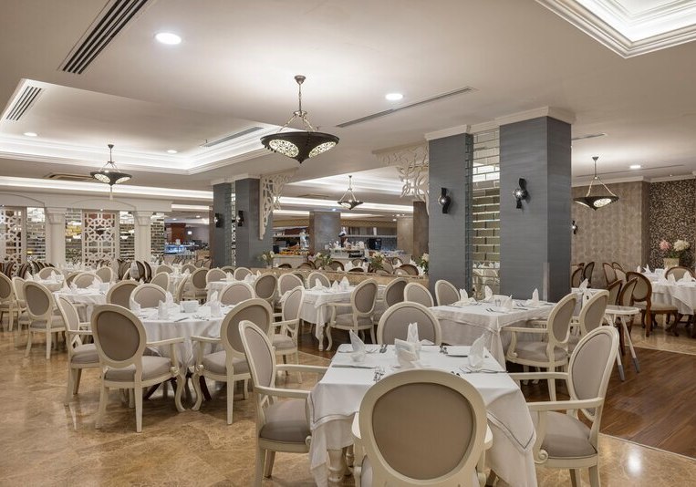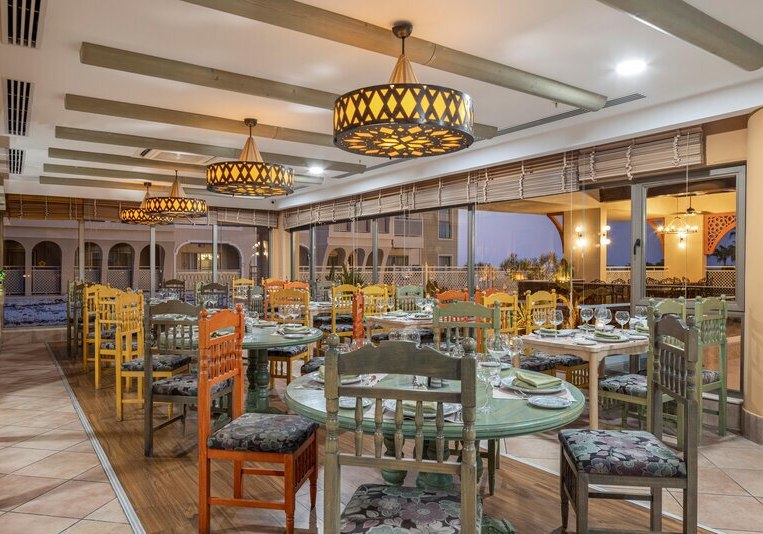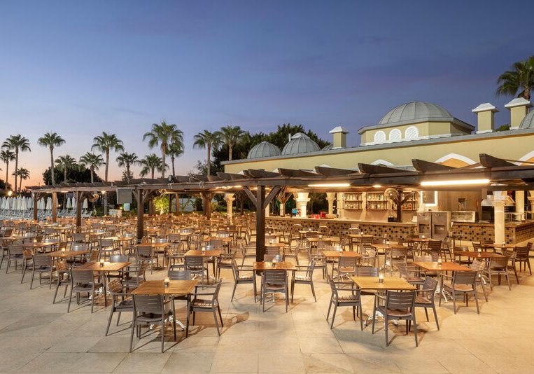 - Buffet & Terrasse: Großes Buffet mit Außensitzplätzen und Live-Kochstationen.