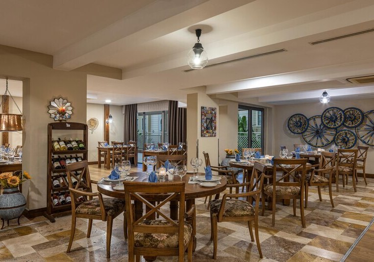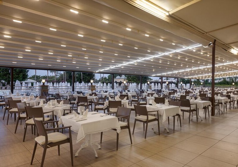 Euch erwartet ein lebendiges Strandresort mit All-Inclusive-Verpflegung, Buffet mit Terrasse und À-la-carte-Optionen. Mehrere Bars – von Lobby über Pool-/Snackbar bis zur Beachbar – sorgen für flexible Genussmomente. Kinder finden Spielplatz und Miniclub, Aktivfans entdecken Tennis-Hartplätze, Fitnessraum und Open-Air-Fitness. Wer Abwechslung sucht, nutzt den Theatersaal oder das gepflegte Spa mit Hamam und Sauna. Highlight: Breites Tages- und Abendprogramm mit klarer Struktur, von Animation bis Show.