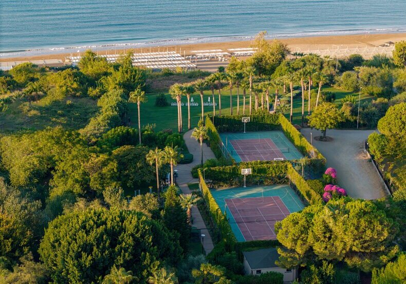 Mit All-Inclusive-Verpflegung, Buffet mit Live-Cooking und À-la-carte-Optionen seid Ihr kulinarisch flexibel, während Tennisplätze, Fitnessbereiche und Wassersport für Bewegung sorgen. Familien profitieren von Miniclub und Spielbereichen, Ruhesuchende von Hamam, Sauna und Hallenbad – ein stimmiges Setup für Eure Strandtage in den Ferien.