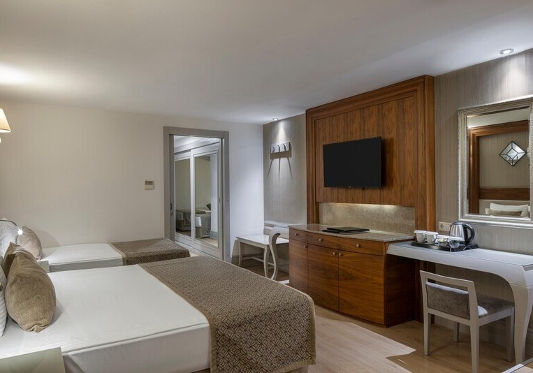 Zusätzliche Ausstattung• Parkplatz • WiFi • barrierefrei / rollstuhlgeeignet (auf Anfrage) • Lounge (Lalezar Lobby Bar, 200, Mon-Sun 09:00-24:00 Holidays 09:00-24:00, Zugang über Rampe, rollstuhlgeeignet, Klimaanlage) • PC-Station • Wasserspender • Minimarkt • Wasserspielbereich (wetterabhängig, stundenweise, kostenfrei)