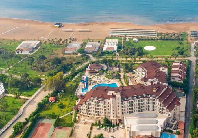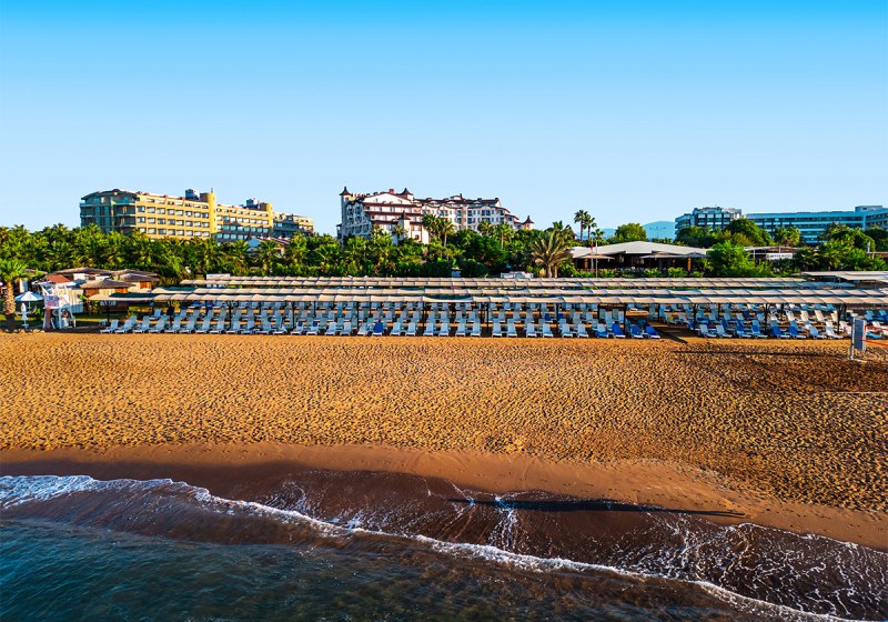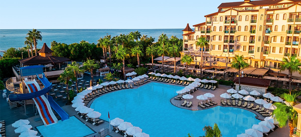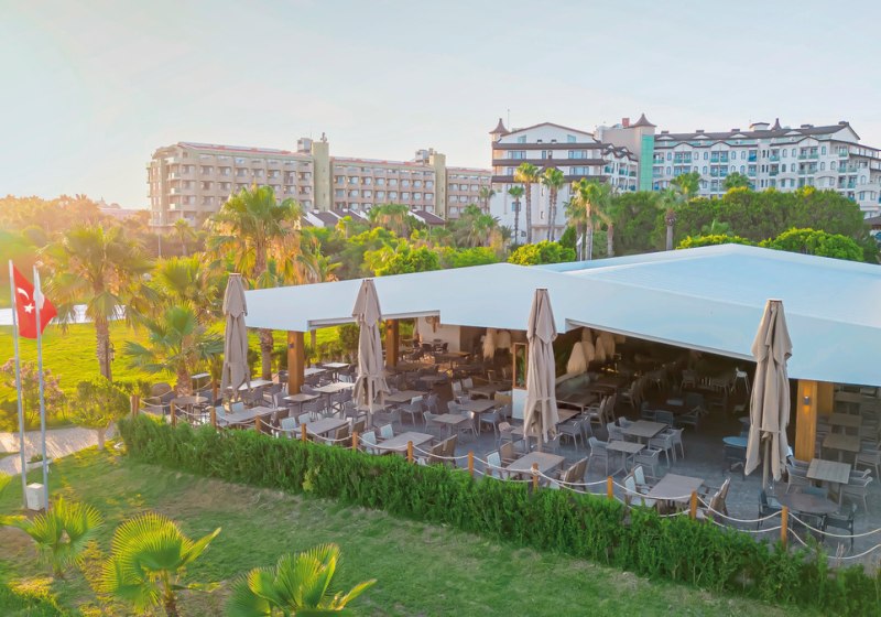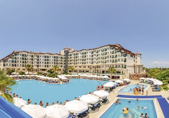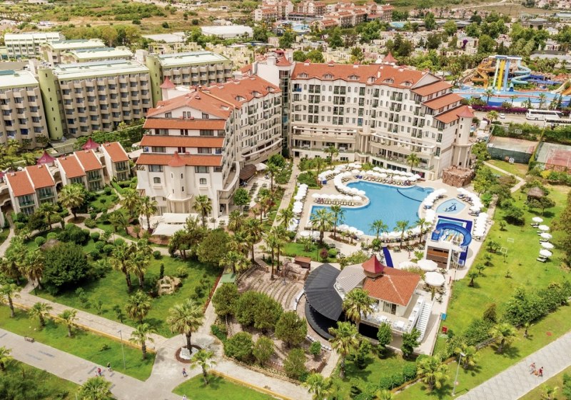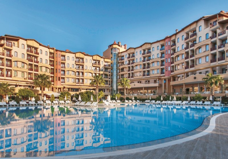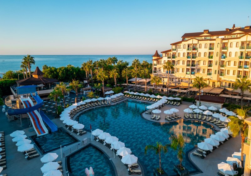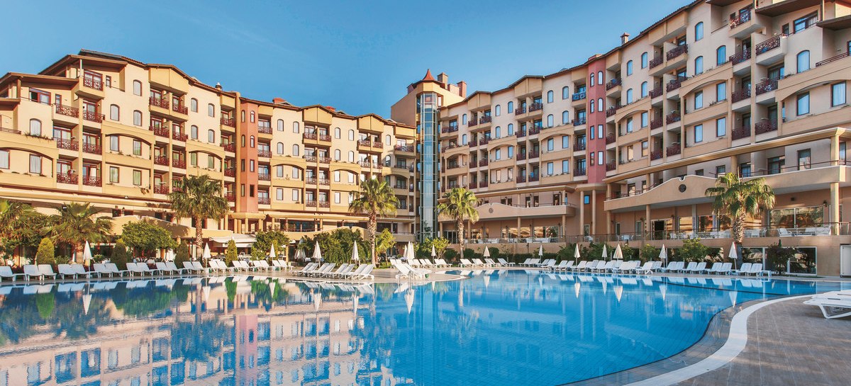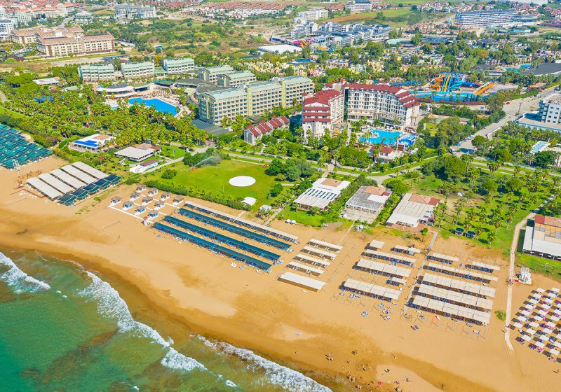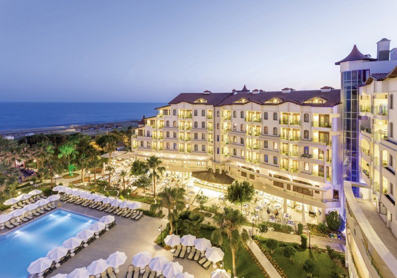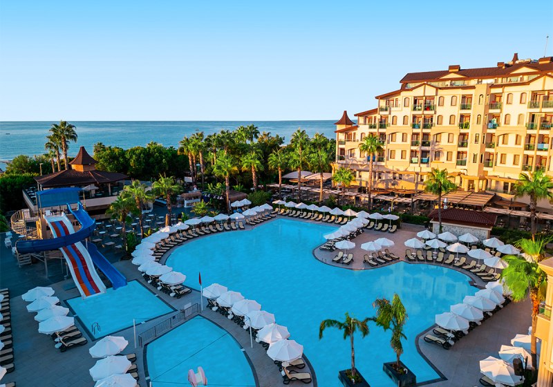 Im Bella Resort & Spa wohnt Ihr in einem Strandhotel mit fünf offizieller Kategorie, gebaut im Jahr 2001 und mit sechs Etagen. Die weitläufige Anlage in Colakli trennt lediglich eine Promenade vom Sandstrand. Zwei Außenpools mit Wasserrutschen und ein separates Kinderbecken setzen lebendige Akzente, während Hallenbad, Spa-Bereich und Garten ruhige Momente ermöglichen.