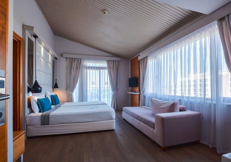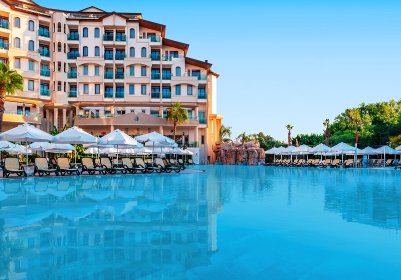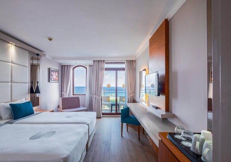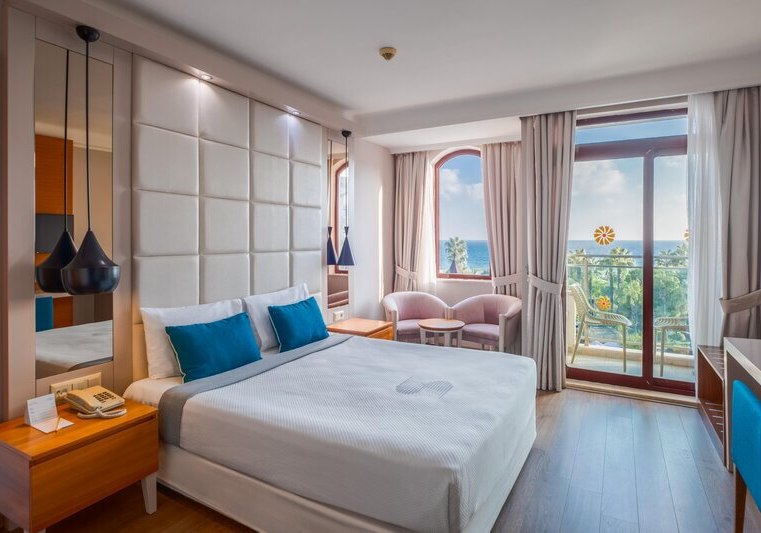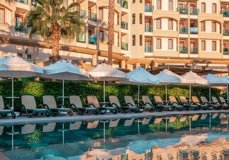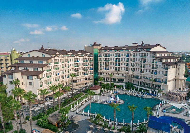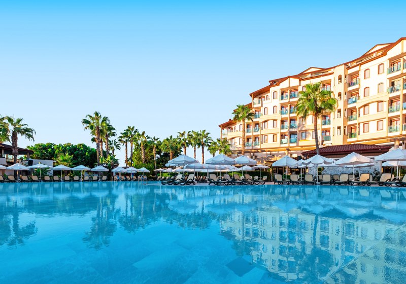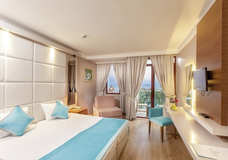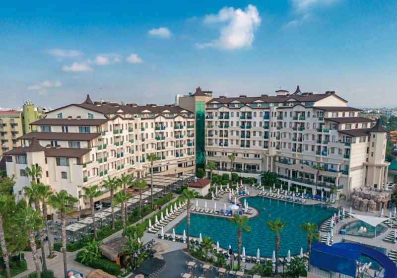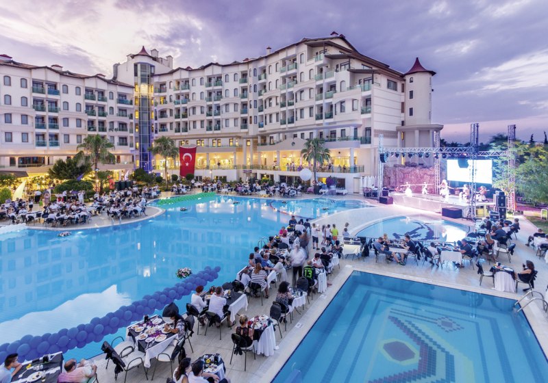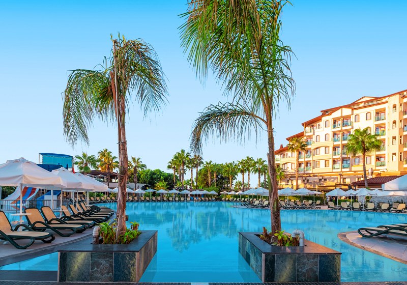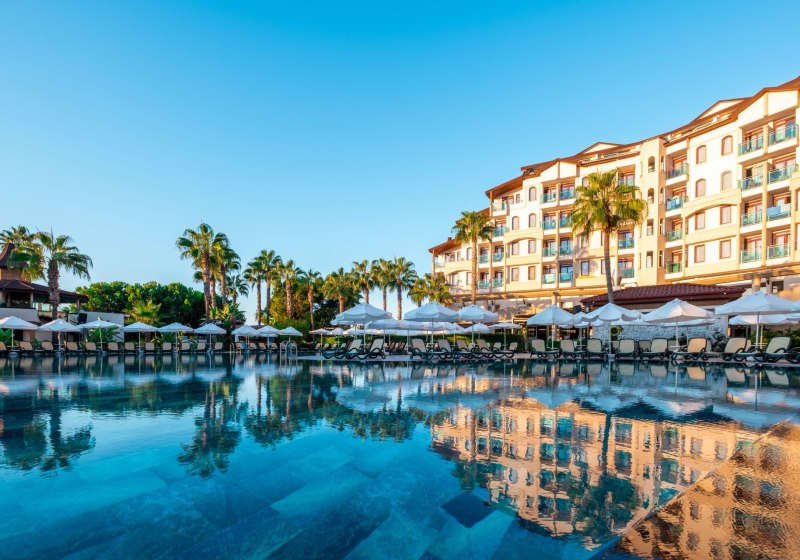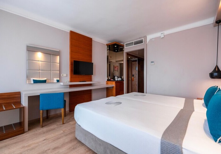 Im Bella Resort & Spa wohnt Ihr in einem Strandhotel mit fünf offizieller Kategorie, gebaut im Jahr 2001 und mit sechs Etagen. Die weitläufige Anlage in Colakli trennt lediglich eine Promenade vom Sandstrand. Zwei Außenpools mit Wasserrutschen und ein separates Kinderbecken setzen lebendige Akzente, während Hallenbad, Spa-Bereich und Garten ruhige Momente ermöglichen.