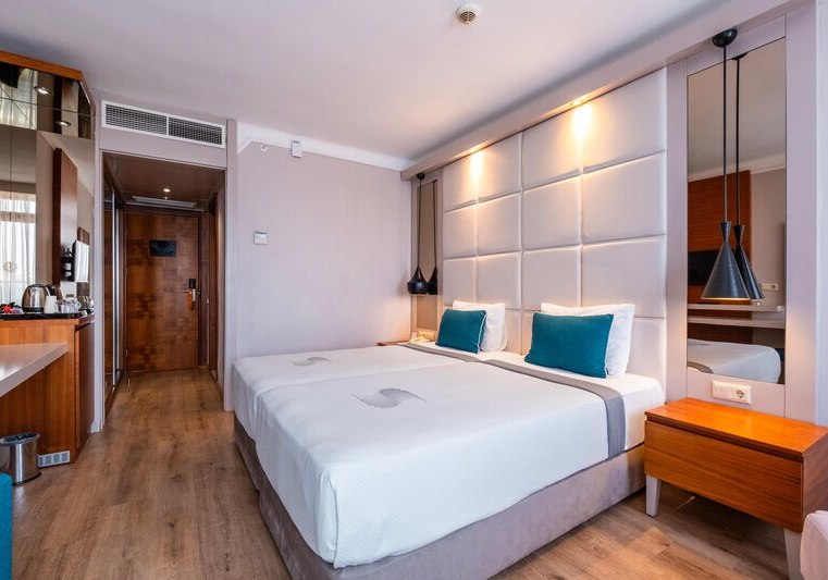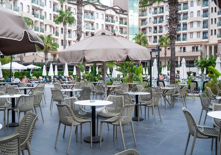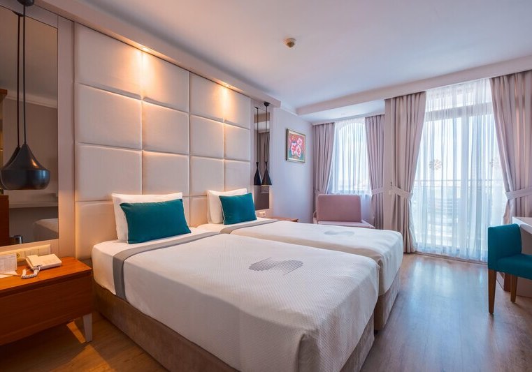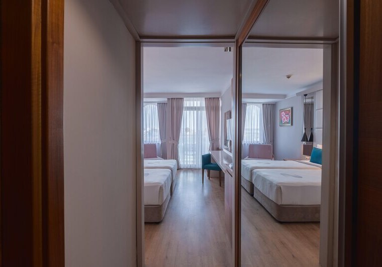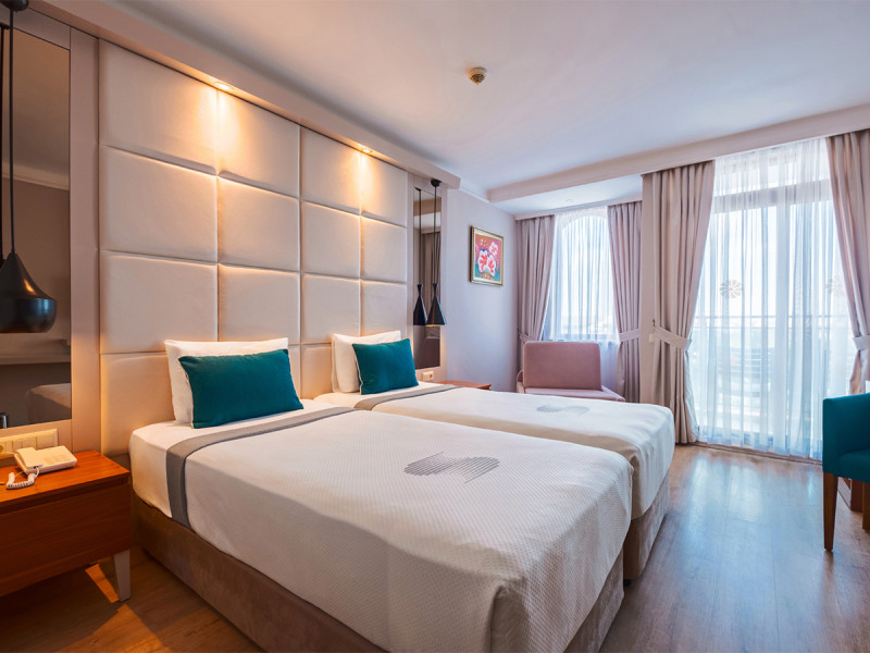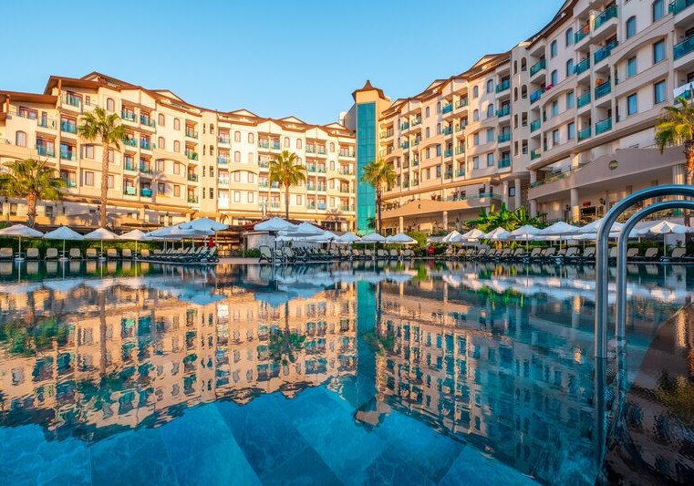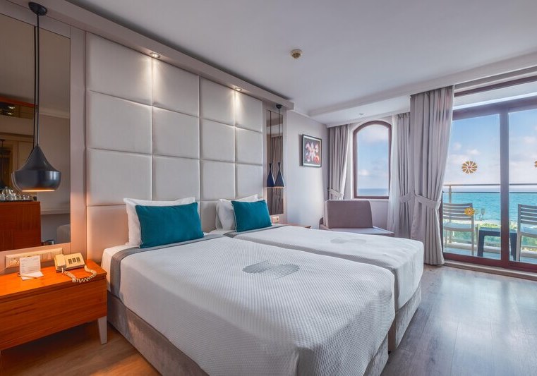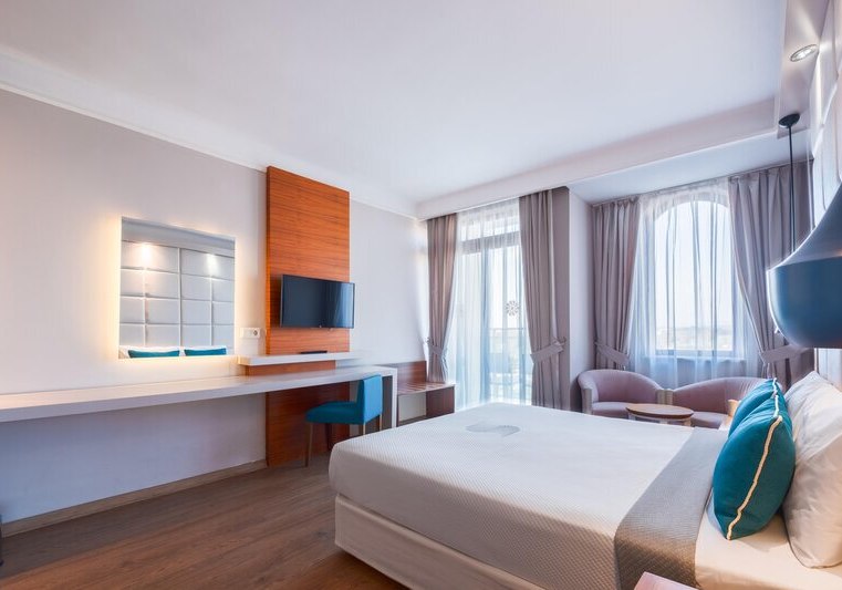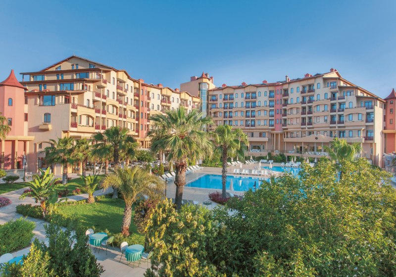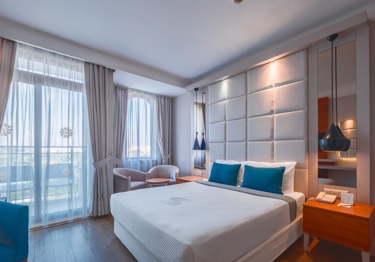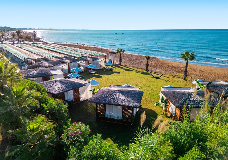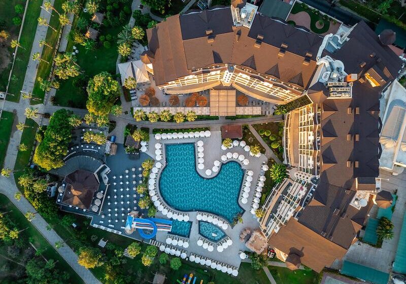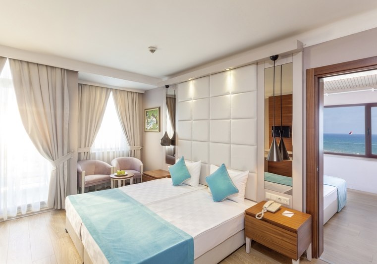 Im Bella Resort & Spa wohnt Ihr in einem Strandhotel mit fünf offizieller Kategorie, gebaut im Jahr 2001 und mit sechs Etagen. Die weitläufige Anlage in Colakli trennt lediglich eine Promenade vom Sandstrand. Zwei Außenpools mit Wasserrutschen und ein separates Kinderbecken setzen lebendige Akzente, während Hallenbad, Spa-Bereich und Garten ruhige Momente ermöglichen.