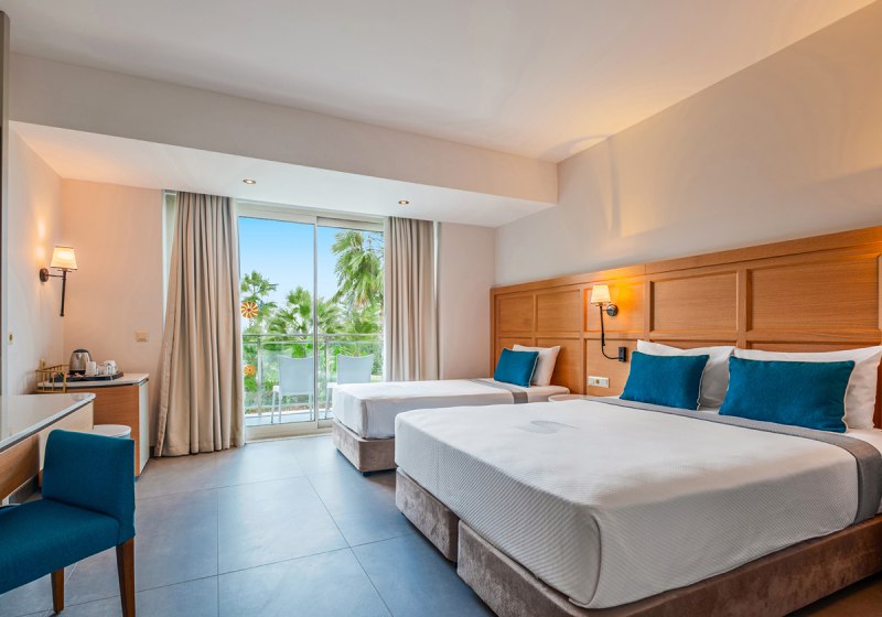 Familienzimmer schaffen Platz, während Zimmer mit Meerblick die Küstenlinie in den Abend holen. Doppelbett, Kingsize‑Option oder Kinderbett decken unterschiedliche Konstellationen ab. Wer Ruhe sucht, nutzt den Sitzbereich und den eigenen Balkon als private Zone zwischen Strand, Pool und Showbühne.