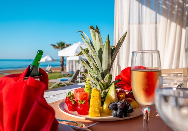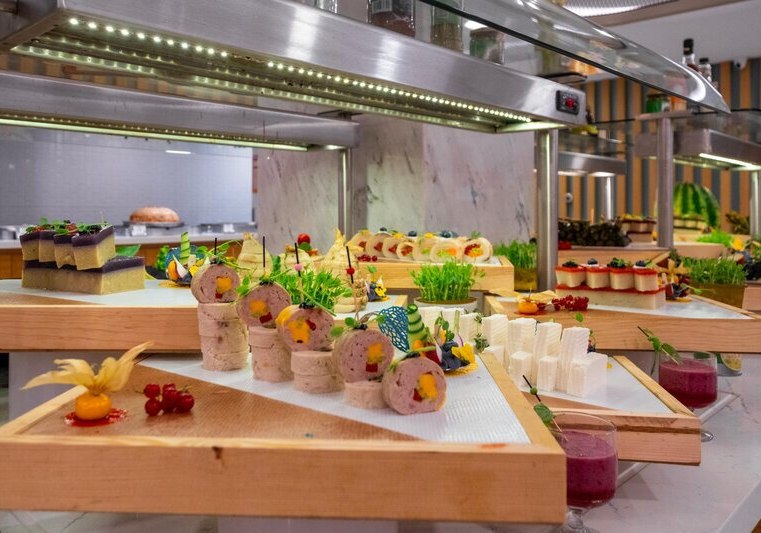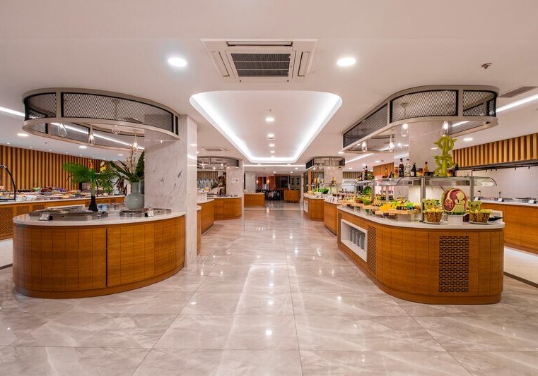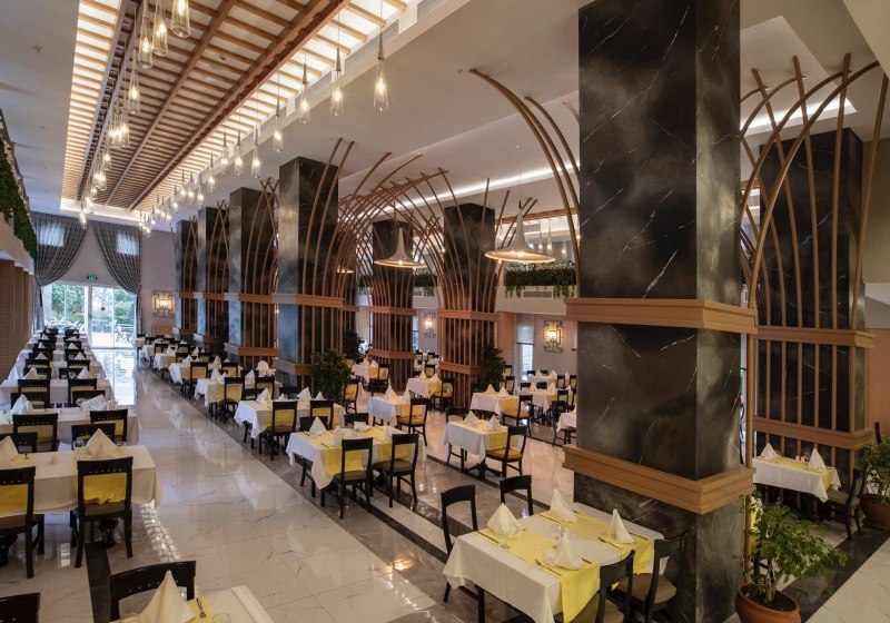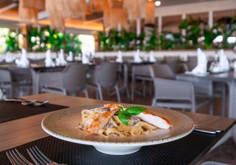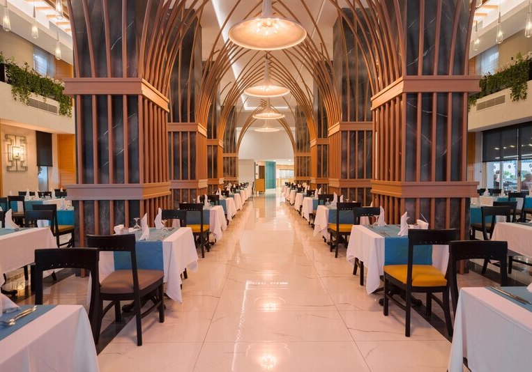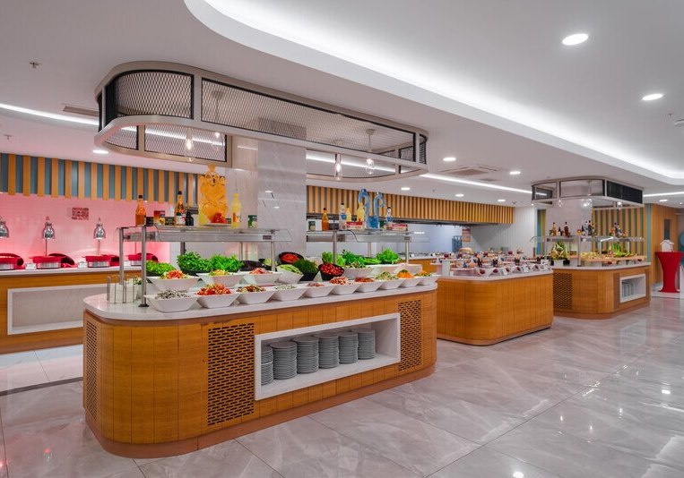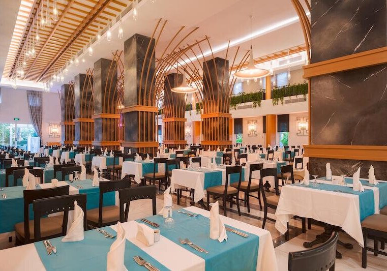 Das kulinarische Herz ist das Hauptrestaurant mit Terrasse und Live‑Kochen. Mehrere À‑la‑carte‑Restaurants setzen Akzente, ergänzt von Café und Patisserie für den feinen Zwischenton. All‑Inclusive umfasst Frühstück, Mittag‑ und Abendessen, Snacks sowie alkoholische und alkoholfreie Getränke, auch glutenfreie Mahlzeiten sind vorgesehen.