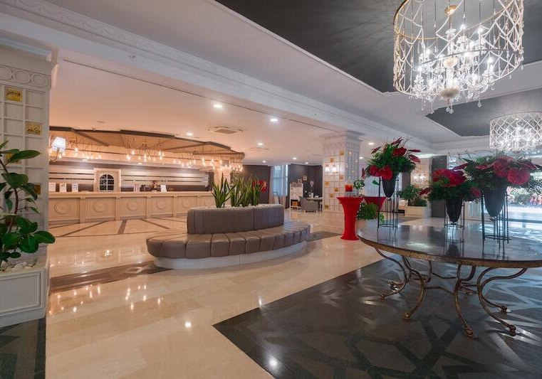 Das Ensemble wirkt funktional und weitläufig: Empfangsbereich mit 24‑Stunden‑Rezeption, Lobbyzonen, Theatersaal und Konferenzräume. WLAN im Hotelbereich, vier Aufzüge, Business‑Center und Gepäckaufbewahrung geben Eurem Aufenthalt Struktur. Shops, Souvenir‑Ecke, Supermarkt und Friseur ergänzen praktische Bedürfnisse ohne Umwege.