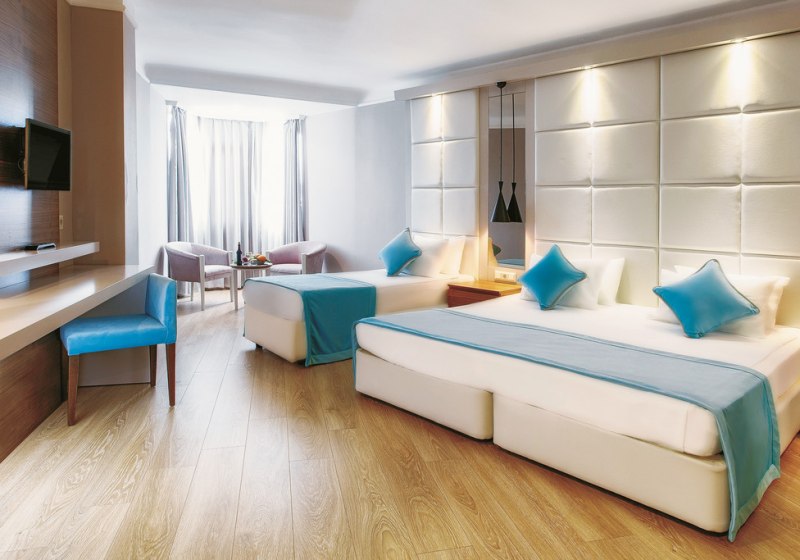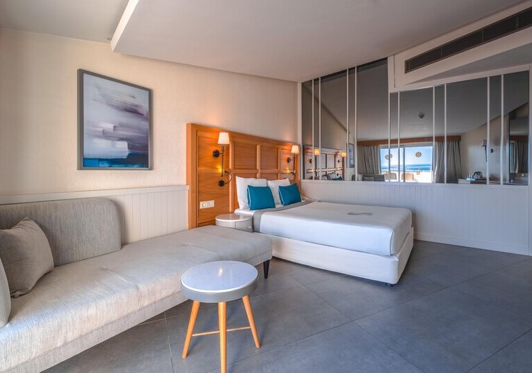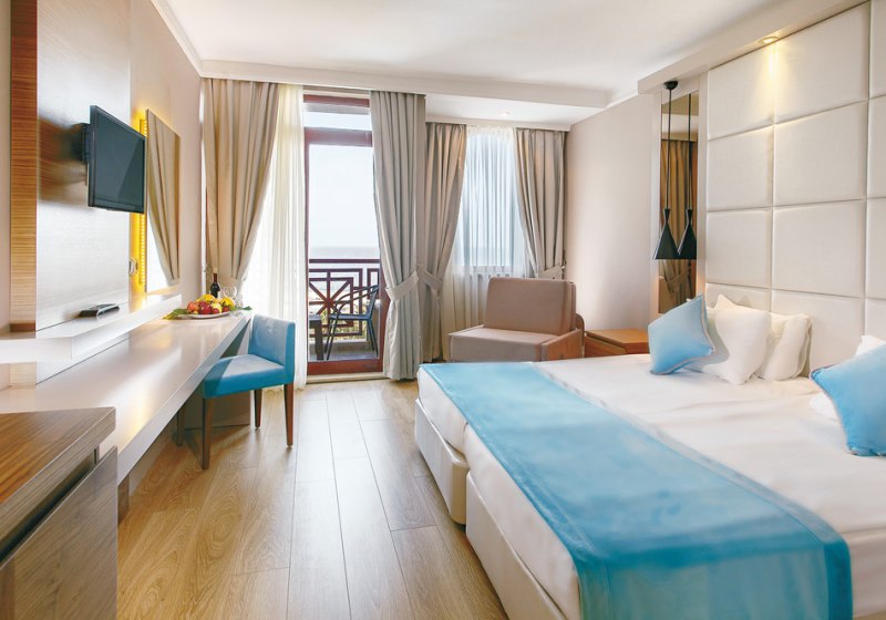 • Klimaanlage • Balkon (je nach Zimmerkategorie) • Kühlschrank • Haartrockner • Sitzecke (je nach Zimmerkategorie) • Minibar (gegen Gebühr, kostenfrei) • Safe (gegen Gebühr) • Meerblick (je nach Zimmerkategorie: seitlich) • Kaffee-/Teezubereiter • Fernseher • rollstuhlgerechte Zimmer (auf Anfrage) • WiFi (kostenfrei) • Schlafsofa