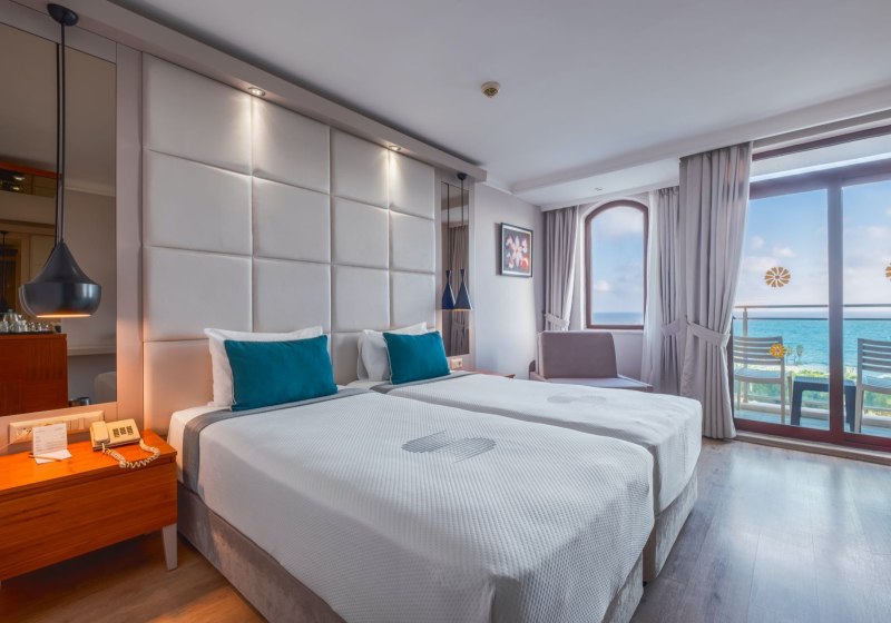 - Meerblick: Ausgewählte Zimmer öffnen den Blick über Strand und See.